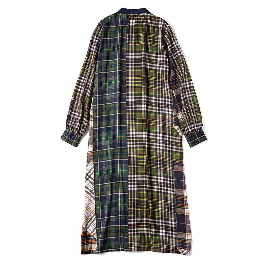 【クーポン配布 お買い物マラソン中】 エリカ社 パッチワーク風チェック シャツワンピース マキシワンピース ロングワンピース ワンピース 129201 \LINE友だち登録でクーポン/