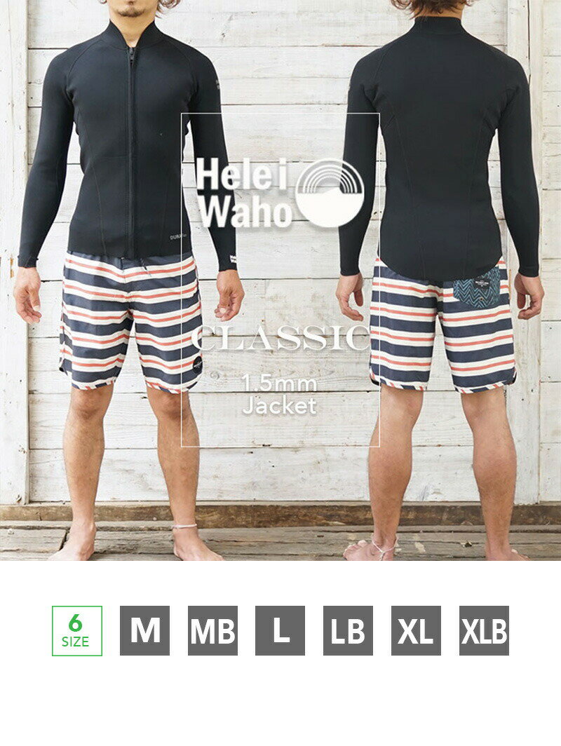ジャケット 1.5mm メンズ ウェットスーツ 長袖 タッパー ストレッチ ジャージ 保温性 日本人サイズ サーフィン SUP ダイビング シュノーケリング ヘレイワホ HeleiWaho CLASSICシリーズ 夏休み 海水浴 ビーチアイテム 海遊び HID