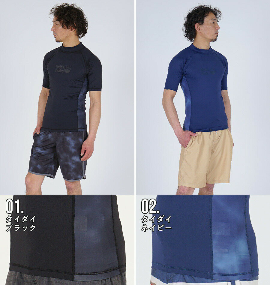 サマーセール ラッシュガード メンズ 半袖 フードなし 水着 透けにくい UVカット UPF50+ 涼感素材 冷感 4WAYストレッチ 花粉 紫外線対策 日焼け予防 サーフィン シュノーケリング 海 プール トレーニング HeleiWaho ヘレイワホ HID