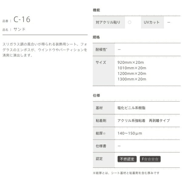 中川ケミカル フォグラス C-16-920mm巾 すりガラス調シート 1m単位