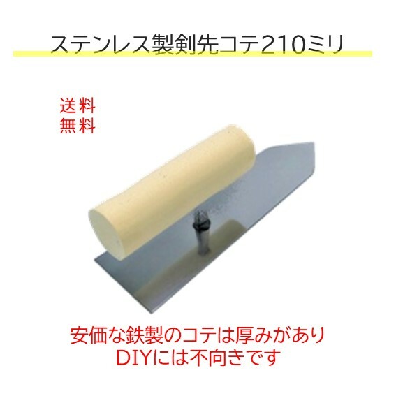 商品情報商品名左官用コテ210ミリサイズ1本長さ 210ミリ 厚さ 0.3ミリDIY 珪藻土 漆喰 しっくい リフォーム 壁 室内 左官 コテ 鏝 210ミリ 1本 オーガニックウォール 送料無料 内装用左官コテ210ミリ 単品販売 コテ仕上げの塗り壁DIYに必要な左官用コテ(鏝)210ミリです。ステンレス製でサビにくい、薄手0.3ミリ厚なのでよくしなり塗りやすい。安価な鉄製のコテはすぐ錆びてしまい、壁に錆が残ります。また厚みも2〜3ミリ程度ありますので、しならず初心者には塗りにくく不向きです。こちらも送料無料でお届けします。 2