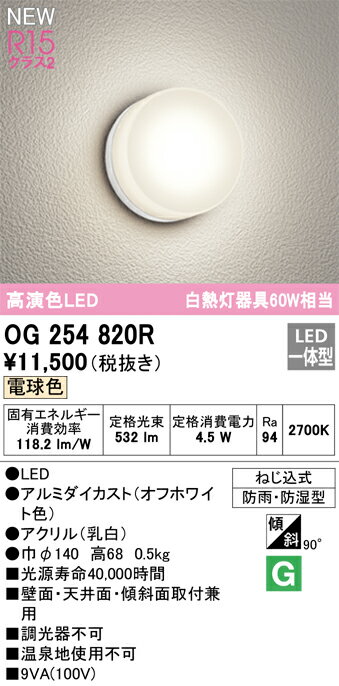 エクステリア 屋外 照明 ライトオーデリックODELIC ポーチライト OG254820R 電球色 白熱灯60W相当 オフホワイト 丸型 デザイン 電球色 LED ブラケットライト バスルームライト 玄関灯 玄関照明 門柱灯
