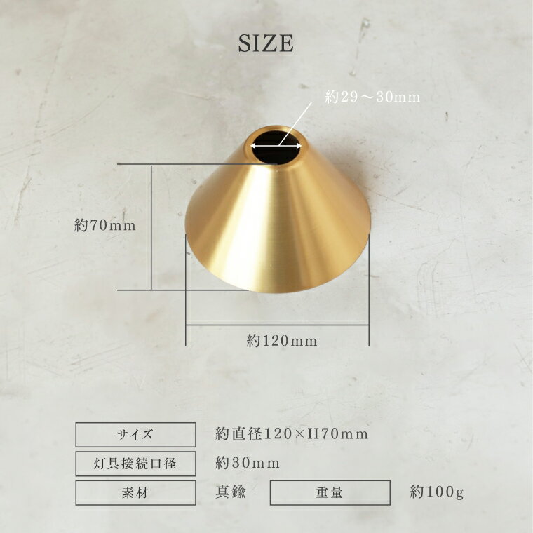 ※こちらの商品はシェードのみです。ペンダントライト(灯具)・電球は付属しておりません。 ▼こちらの灯具に取付けが可能です。 ⇒【挟み込み可能】PORKA E17レトンソケット ⇒【挟み込み可能】E17真鍮ペンダントライト ▼アイアン製(鉄)のミニシェードはこちら ⇒ピエニ アイアンシェード コニック 小さくてかわいいE17用のコニック(円錐型)シェード 「ピエニ ブラスシェード コニック」 マットコーティングを施した真鍮は酸化の進行が遅く、 無塗装の真鍮と比べると経年による変化がゆるやかです。 真鍮独特の輝きは持ちながらも、さらりとした穏やかな風合いで、 シンプル・ナチュラル・ヴィンテージなど様々なインテリアに馴染みます。 シェードが電球の半分以上を覆い、 光を通さない素材なので下方向に光が広がります。 陰影のコントラストが強い、スポット的なあかりが楽しめます。 玄関・洗面所・お手洗いなど 限られた範囲を照らせばよい場合は1灯で、 キッチンカウンターやダイニングなど長さがある空間の場合は 2〜3灯を設置するのがおすすめです。 三角形のミニサイズのシェードは多灯使いでも圧迫感がなく、 カウンターキッチンやダイニングの吊り下げ照明に 色違いで並べて使用するのもおすすめです! ⇒ホワイト、ブラック、ベージュのアイアンシェードはこちら 1灯使いなら、寝室やトイレ、廊下などのスポットの照明として レトロかわいい存在感を放ちます。 【真鍮商品について】 真鍮の素材をそのまま活かすため 色むらがあったりシミのように見える場合があります。 商品によって一つ一つ異なりますが、製品の特徴として、 また真鍮の変わりゆくアンティーク感としてお楽しみください。 【おすすめのエジソン電球LED】 ・明るさもレトロ感も◎一番人気のLED電球! ⇒E17 エジソンバルブLED ・声やアプリで操作可能なスマートLED電球! ⇒E17 エジソンバルブLED スマートDUO ・明るさを抑えたい方に!ノスタルジックな灯りのLED電球。 ⇒E17 エジソンバルブLED ノスタルジア シャンデリア球 ・フロストガラス(すりガラス)を通した柔らかい灯りのLED電球。 ⇒E17 エジソンバルブLED フロストガラス 商品名 ピエニ ブラスシェード コニック Pieni Brass Shada Conic カラー ゴールド サイズ 約直径120×高さ70mm、灯具接続口径/約29〜30mm、重量/約100g 素材 真鍮 仕様 口金:E17用 ※灯具、電球はついておりません。 注意事項 ※お手入れは水で濡らした布で拭き取ってください。シンナーや金属研磨剤などはコーティングが剥がれるため使用しないでください。 ※真鍮の素材をそのまま活かすため色むらがあったりシミのように見える場合があります。商品によって一つ一つ異なりますが、製品の特徴として、また真鍮の変わりゆくアンティーク感としてお楽しみください。 メーカー 株式会社アクシス TEL:086-242-5115 広告文責 株式会社ディーエムエー TEL:0120-947-057 製造国 中国※こちらの商品はシェードのみです。ペンダントライト(灯具)・電球はついておりません。 ▼こちらの灯具に取付けが可能です。 ⇒【挟み込み可能】PORKA E17レトンソケット ⇒【挟み込み可能】E17真鍮ペンダントライト ▼アイアン製のミニシェードはこちら ⇒ピエニ アイアンシェード コニック 小さくてかわいいE17灯具用のランプシェード「ピエニ ブラスシェード コニック」 フィンランド語で「小さい」を意味する「ピエニ」。 小ぶりながらも存在感のあるブラス(真鍮)素材の円錐型シェードです。 玄関・洗面所・お手洗いなど限られた範囲を照らせばよい場合は1灯で、 キッチンカウンターやダイニングなど長さがある空間の場合は2〜3灯を設置するのがおすすめです。 真鍮独特の輝きは持ちながらも、さらりとした穏やかな風合いで、 シンプル・ナチュラル・ヴィンテージ等さまざまなインテリアに馴染みます。 電球、灯具は付属しておりませんので、E17用のペンダントライトとお使いください。 ※こちらの商品はシェードのみです。ペンダントライト(灯具)・電球は付属しておりません。 ▼画像で使用しているLED電球はこちら エジソンバルブLED E17ノスタルジア シャンデリアグレー ※こちらの商品はシェードのみです。ペンダントライト(灯具)・電球は付属しておりません。 シェードの取り付けが可能!E17真鍮ペンダントライト コード長さ別一覧 【15cm】E17真鍮ペンダントライト 【30cm】E17真鍮ペンダントライト 【60cm】E17真鍮ペンダントライト 【100cm】E17真鍮ペンダントライト 【150cm】E17真鍮ペンダントライト エジソンバルブLED(口金E17)一覧 E17 エジソンバルブLED E17 ノスタルジア シャンデリア E17 ミニGLOBEフロストガラス E17 エジソンバルブLEDスマートDUO