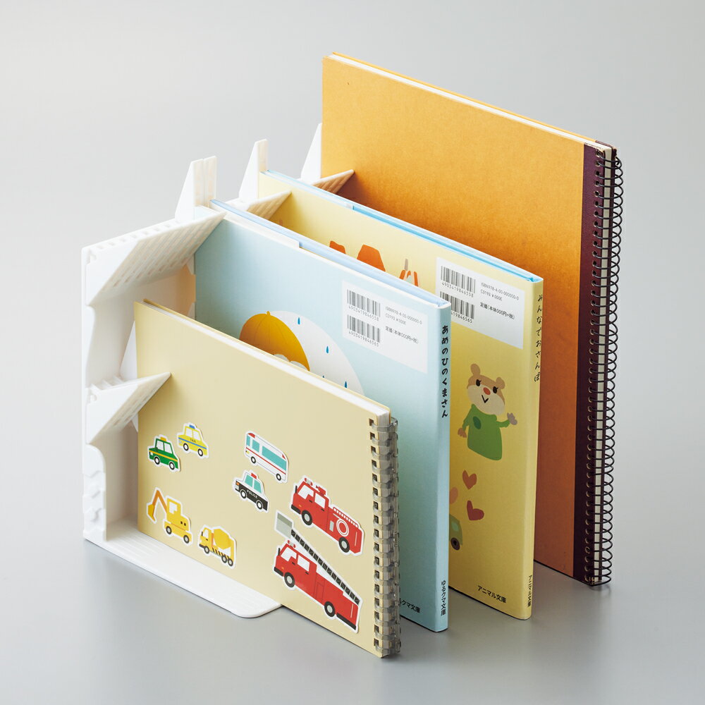 ●サイズ:幅203×奥行き150×高さ212mm ●材質:本体/ハイインパクトポリスチレン *ストッパー上昇時:最大高さ233mm 【推奨対応サイズ】 文庫サイズ:約105×148mm 新書サイズ:約103×182mm A5(ハードカバー)サイズ:約156×217mm CD:約143×125mm DVD:約136×191mm *最小対応高さ:120mm(120mm以下はストッパーが十分に当たらないためスタンドできません) *ストッパーの厚み(8.6mm)より薄いものなど、立てかけるものの厚みによって、直立しない場合があります。