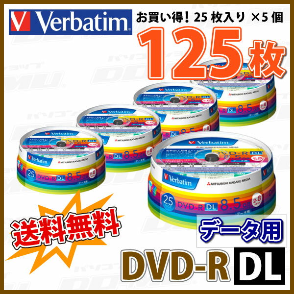 【記録メディア】 Verbatim(バーベイタム) DVD-R DL データ用 8.5GB 2-8倍速 ワイドホワイトレーベル 【125枚(25枚×5個)スピンドルケース】 (DHR85HP25V1 5個セット) 【送料無料※沖縄・離島・一部地域を除く】 【KSW】
