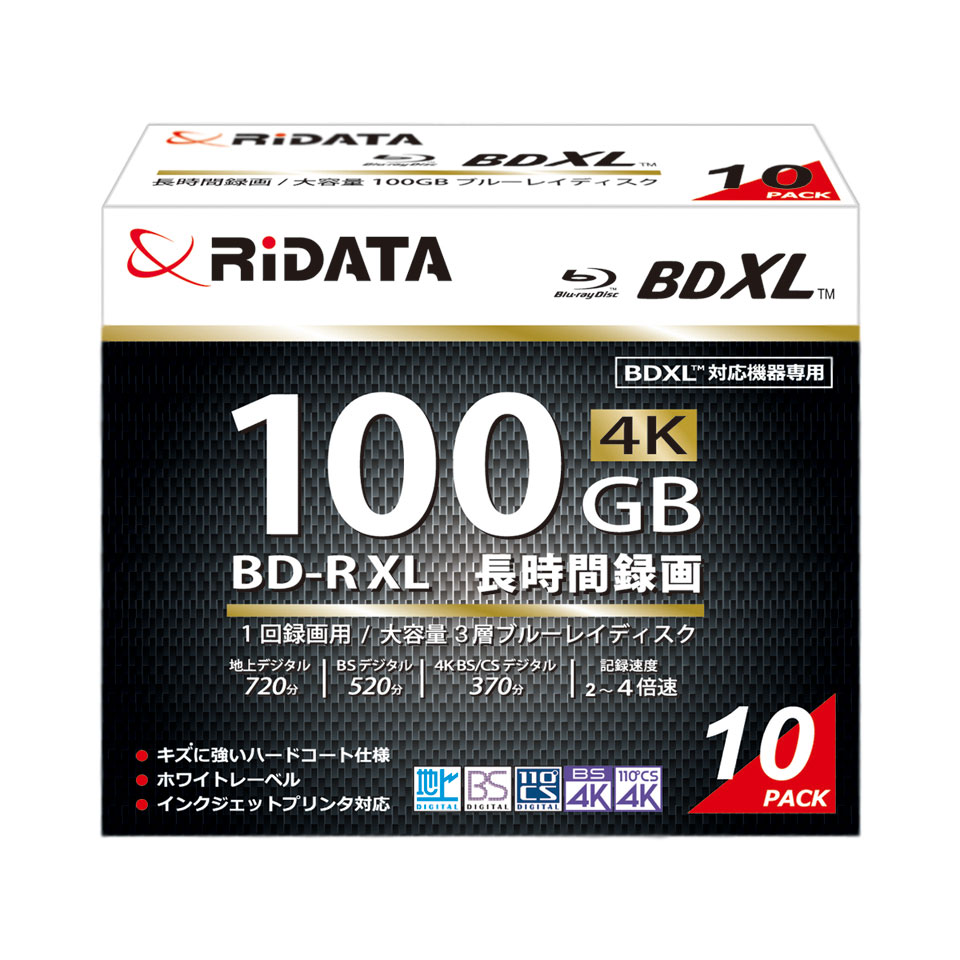 【ブルーレイディスク】 RiDATA(ライデータ) BD-R XL データ&デジタルハイビジョン録画用 100GB 2-4倍速 ワイドホワイトレーベル 10枚スリムケース (BD-R520PW4X.10PSC A) 【送料込み※沖縄・離島・一部地域を除く】 【KSW】