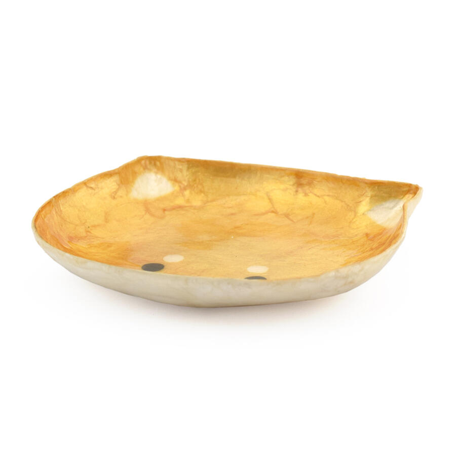 フィリピンの海で取れたカピス貝を加工して作られています。 1つ1つ違う、天然の素材ならではの風合いが楽しめます。 品質保持のため、表面に樹脂コーティングを施してあります。 汚れが付いた場合はぬるま湯でやさしく洗うか、濡らした布巾などでやさしくふき取ってください。 ☆こちらのページは、トレイ 柴犬フェイスのページです 生産地 フィリピン サイズ:約11×9×H1.5cm 素材・材質:カピス貝 注意事項 ※生産時期や工程の都合上、写真と色が異なる場合がございます。 商品の色をそのまま表現できるよう努めておりますが、お客様ご利用のモニター、パソコン・スマートフォン等の環境設定で実際の色とは若干違いが出る場合がございます。 ※ハンドメイド商品のためサイトに表示しているサイズや画像の色と多少異なること、多少の傷などがある場合がございます。 あらかじめご了承ください。 柴犬グッズはこちらから