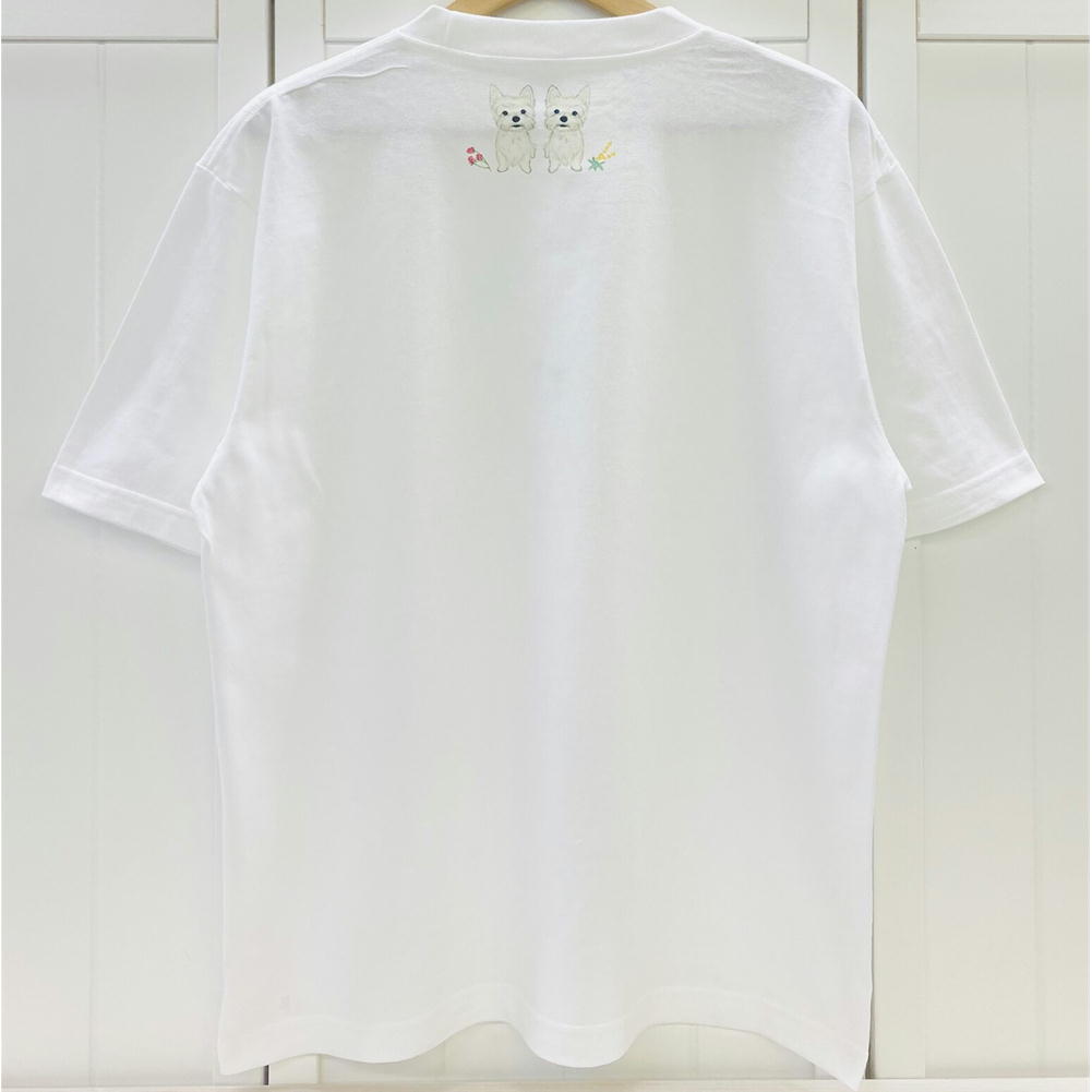 ウエスティちゃんのTシャツです♪ 真っ白な毛並みが美しく とってもかわいいウエスティちゃん♪ 後ろのワンポイントは2匹のウエスティ(*^^*) INしてもOUTしても バランスよく着れるサイズ感♪ 身巾が広いのに対して丈が通常のメンズTシャツよりも 少し短かく腰に引っかからずにストンと着れるので ボリュームのあるスカートやパンツ、細めのデニムなどにも 合わせやすいと思います♪ 袖丈も肘くらいまで長く、 ゆったりサイズで重ね着もできるので 春夏はもちろん秋冬も重宝しそうな1枚です。 ※一般的なTシャツよりゆったりしてます。 サイズをご確認いただきお手持ちのTシャツと比較などしてお確かめください。 Size: ■S 身丈 67 身巾 55 肩巾 51 袖丈 24 ■M 身丈 70 身巾 58 肩巾 53 袖丈 25 ■L 身丈 73 身巾 61 肩巾 55 袖丈 26 【サイズに関してのご注意】 綿素材のため縫製上生じる若干の誤差は 何卒ご容赦くださいますようお願い申し上げます。 ■生産地:ベトナム(プリント日本) ■素材・成分:コットン100% 注意事項 ※モニターにより、色の見え方が実際の商品と異なることがございます ※同一商品でもプリント位置は1点1点に違いがございます ●初め若干色落ちする事がありますので他の物と一緒に洗わないで下さい。 ●お洗濯の際には摩擦によるプリント劣化、型くずれを防ぐため裏返しにして ネットに入れ、液温は40℃を限度とし洗濯機のソフトモードでお願い致します。 ●天然素材のため若干縮む場合もございます。 ●塩素系漂白剤は使用しないでください。タンブラー乾燥はお避けください。 ウエスティグッズはこちらから