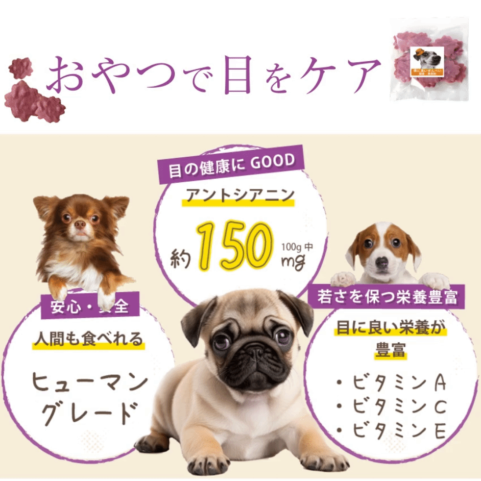 犬 おやつ (目に良いせんべい 10袋)目・瞳・視力 無添加 国産 有機 天然 減塩 低カロリーの犬用おやつ 犬おやつ 涙焼けのケア アントシアニンが豊富な紫いもの犬のおやつ オーガニック