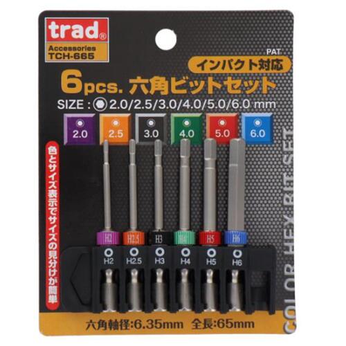 【メール便!】 trad トラッド TCH-665 trad 6pcs.六角ビットセット 65mm 六角軸 ドライバービットセット 三共コーポレーション