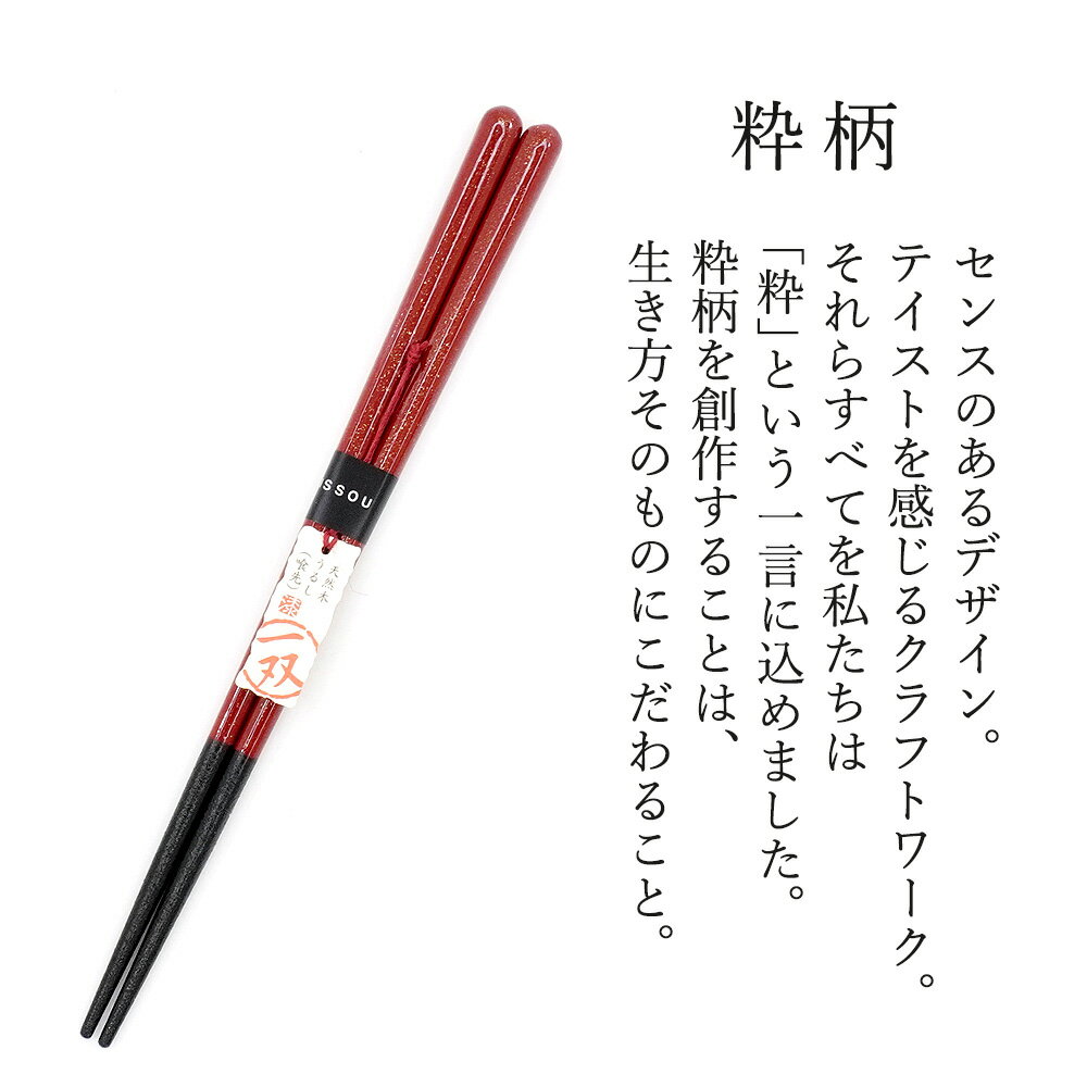 【一双 星しぐれ 女性用一膳 桐箱入り】 長さ:女性用 20.5cm 木地:天然木 形状:角丸 先の形:丸(すべり止め加工) 塗装:上部:ポリエステル 下部:漆 <商品説明> 伝統のお箸で食事する贅沢なひととき、、、 高級感が人を魅了してやまない! このお箸は伝統技法に現代的デザインを取り入れました。 贈り物に最適です。 【のし紙をご希望のお客さまへ】 のし紙をご希望の場合は、「買い物かごに入れる」からご注文画面へお進みいただき 包装紙をお選びいただいたうえで、 「備考欄」に記入欄(記入フォーム)がございますので ご記入くださいませ。 夫婦箸のセットはこちら↓↓↓ 【一双 星しぐれ 夫婦箸 桐箱入り】 八代目 箸匠 はりま屋の由来 弊社の創業は、遡りますこと今から約160年前の江戸末期の文久(ぶんきゅう)年間になります。 初代・播磨屋忠右衛門(はりまやちゅうえもん)は、播磨国(はりまのくに)三木(現在の兵庫県三木市)から大阪に出てきて商売を始めました。 「八代目 箸匠 はりま屋」の店名は、それに因んで付けさせていただいております。 初代・忠右衛門が始めたのはお箸ではなく、漆(うるし)の商売でした。 全国各地から採れた漆の樹液を加工して、全国の漆器産地や仏壇産地、寺院などに提供していました。 当時は化学塗料がまだない時代でしたので、あらゆる木製のものに漆を塗り、金属にも焼き付けという技法で漆が使われていました。現在も南部鉄器の鉄瓶などこの技法です。 例えば、刀の鞘(さや)、鎧兜(よろいかぶと)などの武具に、箪笥や座卓などの家具類に、家の柱や床にと相当な量の漆が使われていたと想像できます。 時は経て、先代の七代目からお箸を取り扱い始め、現在に至っています。 お箸を扱うようになったのは、漆の卸しているお得意様にお箸を塗っている工房もあったので、仕入れることが出来たからです。 また、お箸は日常的に使われるものなので、みなさまのお役に立てるのかなと思った次第です。 始まりは漆でしたが、特に漆塗りのお箸にこだわらず、お客様に喜んでいただける商品を扱っていきたいと思っております。とはいえ、漆のことには精通しておりますので、ご質問いただければお答えいたします。 因みに、最近の研究で、漆には黄色ぶどう球菌、O157などに対する抗菌作用、また抗ウイルス作用も判明されていますので、漆塗りのお箸は安心してお使いいただけますので、ぜひ日々の生活の中でお使いいただけたらと思います。 八代目 箸匠 はりま屋の想い 【喜びと感動のサービス】 1.贈り物、プレゼント、記念品の提供を通じて、贈る人、受け取る人が共に喜び笑顔になれる商品とサービスの提供をして参ります。 2.日用品の販売を通じて、お客様が豊かな気持ち、幸せな気持ちになれる商品・サービスの提供を目指します。 3.喜びと感動をお届けするために、お客様の想いを受け取り、さらに一歩上のサービスを目標に掲げ実行します。 【感謝の気持ち】 私達のまわりのすべての人、物に感謝します。 お客様、取引先様、従業員、そのほか私達のサービスに係るすべての人たち、会社、物に感謝します。 【誠実な企業活動】 誠実な企業活動を通してお役に立てるよう日々精進してまいります。 これからも【八代目 箸匠 はりま屋】を何卒ご贔屓の程、よろしくお願い申し上げます。八代目 箸匠 はりま屋は、一緒に働いている仲間の幸せを願い、共にサービス向上を目指すお店です。 品名|一双 星しぐれ 女性用一膳 桐箱入り 福井県で製造された若狭塗り箸人気ブランド[一双-issou-]の高級感漂う上品なお箸を丁寧に桐箱に入れお届けします。 熟練の箸職人が、古くから伝えられた伝統技法に現代的デザインを描き、一膳の作品として仕上げます。 贅沢に散りばめられた星の数々が華やかな食卓を演出します。 「乾漆」と呼ばれる技法を使い、デザインだけでなくお箸としての役割を果たします。 女性や手の小さい方に向いているサイズです。 お箸はどなたでも毎日使うものなので、贈り物として喜ばれます。 ※メール便(クロネコDM便)は日時指定、代引きはできませんのでご注意ください。 ※北海道、沖縄への代引き及び日時指定は別途料金がかかります。 ご注文後の自動返信メールには別途料金は記載されておりません。 (送料を修正したメールを後程送りますので、ご確認ください) 下記のようなイベント、シーンにご利用ください。 贈り物 結婚祝い 結婚式の引き出物 お祝い 返し 結婚内祝い 結婚 お祝い お返し 内祝い 御年賀 お中元 お歳暮 還暦祝い 古希祝い 結婚記念日 金婚式 錫婚式 銀婚式 木婚式 紙婚式 退職祝い 初任給 敬老の日 プレゼント 敬老会 父の日 母の日 ギフト 長寿お祝 60歳 還暦(数え61歳) 古希(70歳) 喜寿(77歳) 傘寿(80歳) 米寿(88歳) 卒寿(90歳) 白寿(99歳) 百寿(100歳) お誕生日 プレゼント ウェディングギフト ブライダルギフト 引き出物 引出物 結婚引き出物 結婚引出物 結婚内祝い 出産内祝い 命名内祝い 入園内祝い 入学内祝い 卒園内祝い