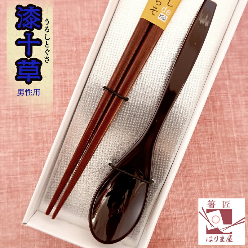 漆十草 男性用 箸一膳 と スプーン(小)赤 一本 セット 紙箱入り 海外へのおみやげ 海外へのお土産 日本のお土産 外国人が喜ぶお土産 日本製 外国 和 和柄 和風 japanese Hand Made 小さい 軽い Ma
