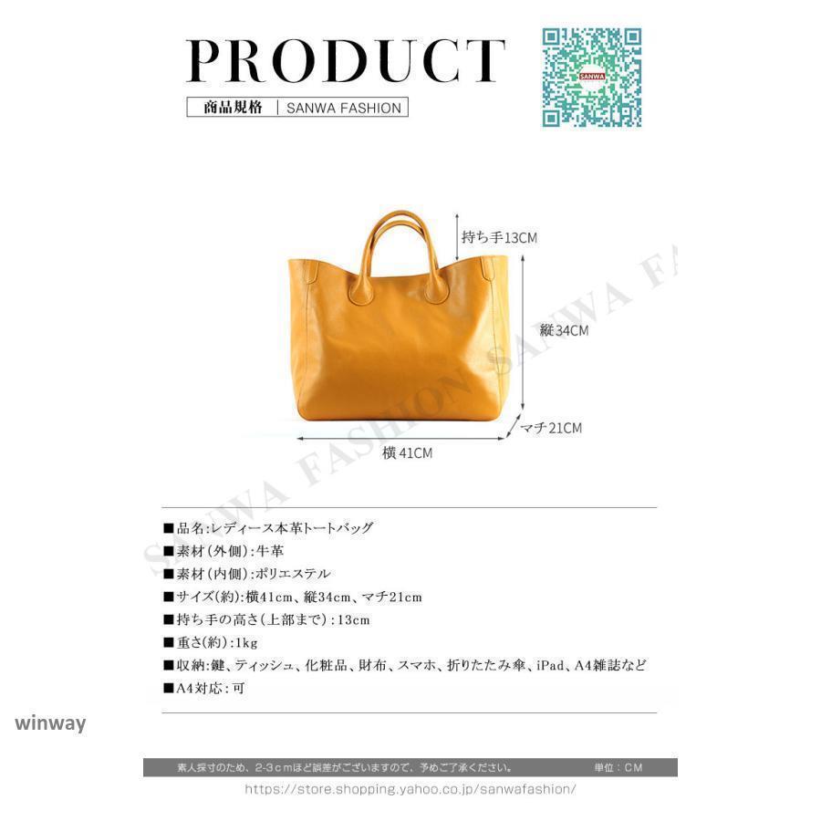 ■品名:レディース本革■素材(外側):牛革■素材(内側):ポリエステル■サイズ(約):横41cm、縦34cm、マチ21cm■持ち手の高さ(上部まで):13cm ■重さ(約):1kg■収納:鍵、ティッシュ、化粧品、財布、スマホ、折りたたみ傘、iPad、A4雑誌など■A4対応:可ご注意デリケートに仕上がった革の表面はキズがつきやすく、また水に濡れた場合、汗、摩擦等により色落ち、着色の可能性がありますので十分ご注意下さい。検索ワード: レディース レザーバッグ 本革 革バッグ ショルダーバッグトート かばん 無地 肩掛け ビジネスバッグ オフィス シンプル 鞄 大容量 大きめ 収納 カジュアル ビジネス?牛革 仕事用?出張 旅行?デイリー キレイめ 定番 通勤?通学 大人 20代?30代?40代 50代 おすすめ