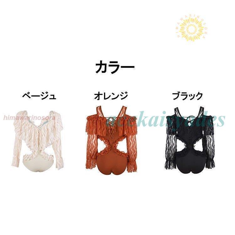 【素材】:ポリエステル【カラー】:ベージュ、オレンジ、ブラック【サイズ】:(約)*バスト:75ABC-80A(M) 75C-85A(L) 80C-75D(XL)*ウエスト:60-70cm(M) 67-77cm(L) 73-83cm(XL)*参考身長:150-165cm(M) 153-170cm(L) 158-172cm(XL)*参考体重:45-52kg(M) 52-60kg(L) 55-65kg(XL)【商品説明】:水着 レディース ワンピース水着 レディースビキニ 韓国風 40代 30代 長袖 レース 肩出し フレア きれいめ バックリボン 3色