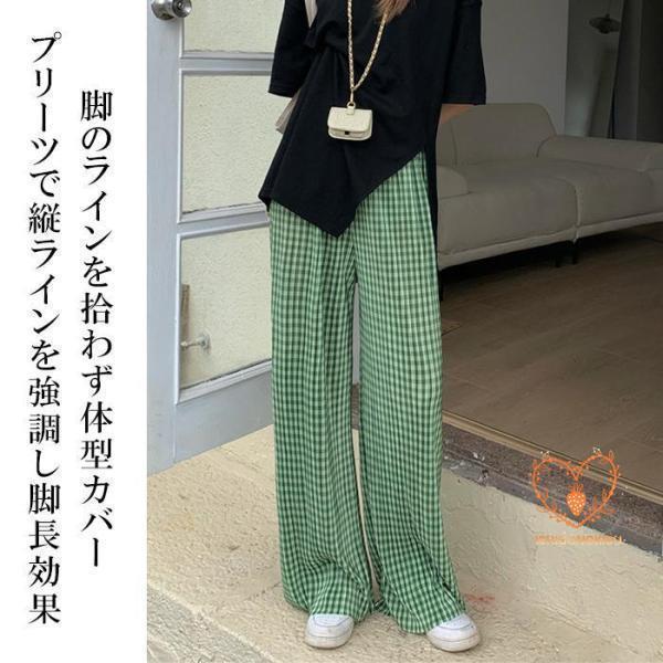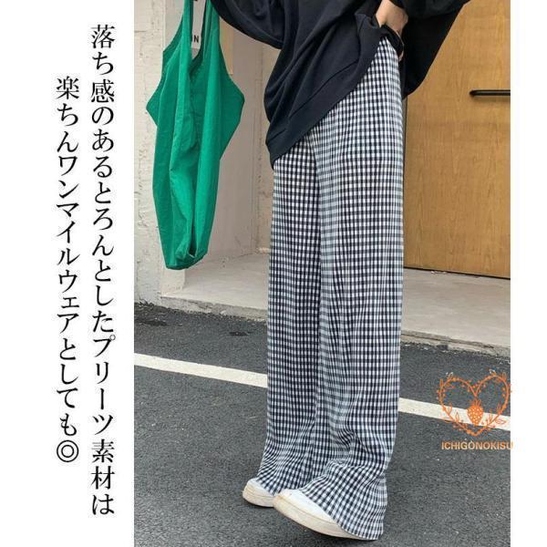ワイドパンツ プリーツパンツ レディース セルフカット ロングスカート プリーツ ゆったり 大きいサイズ 低身長 柄 パンツ