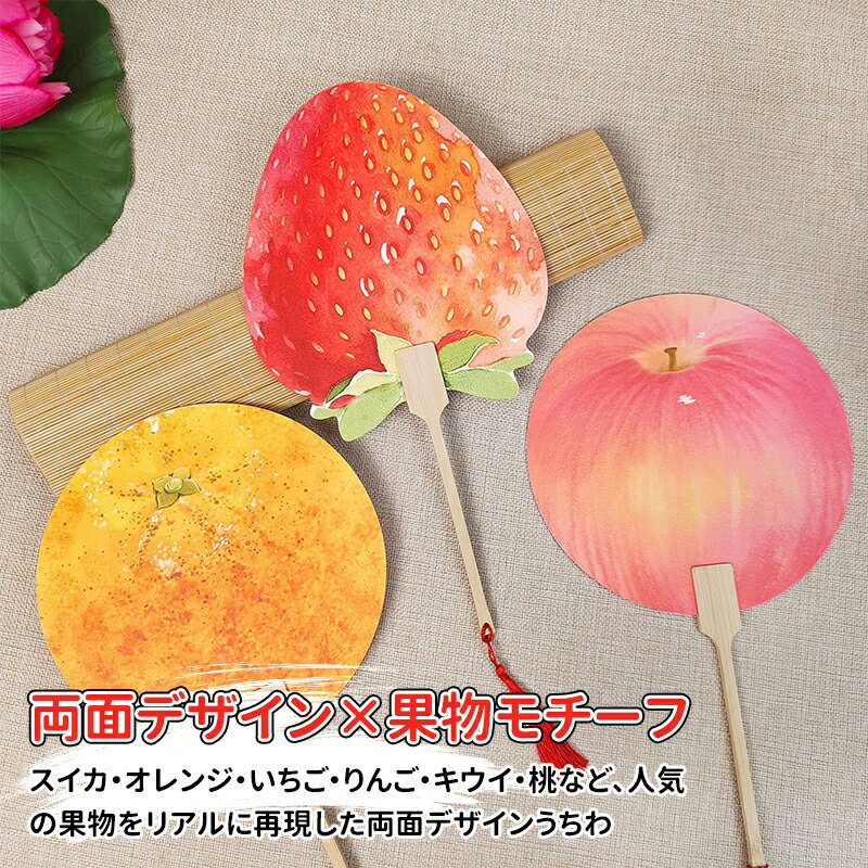 \5倍ポイント/\選べる2個セット/【両面プリント フルーツ柄 団扇】スイカ オレンジ いちご りんご 桃 キウイ|かわいい 果物デザイン うちわ 扇子 レディース 子供用|夏祭り 浴衣 イベント ギフト|竹製取っ手 宣紙 PVC補強 軽量 頑丈 持ち運び便利 プレゼント用