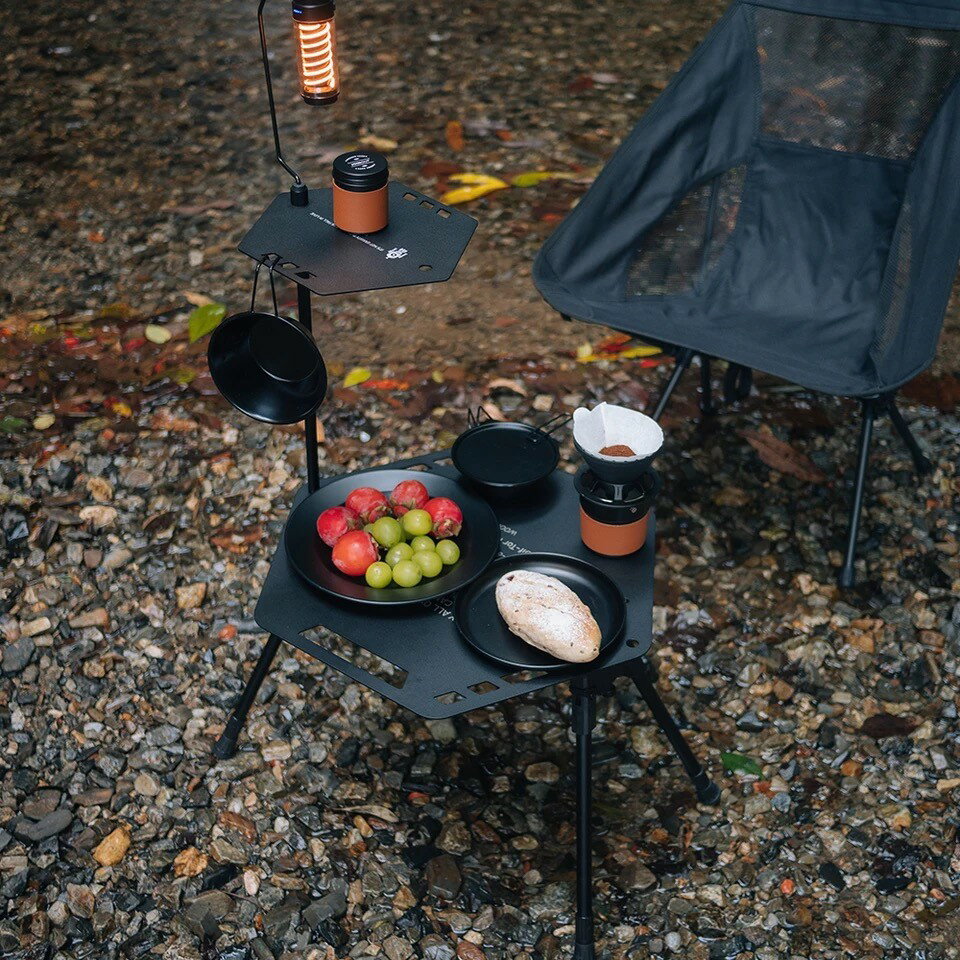 GENERIC OUTDDOR ヘキサソロテーブル 六角ソロテーブル サイドテーブル ランタンスタンド付き 収納ケース付き サンド塗装 ブラックギア ソロキッチンテーブル ソロキャンプテーブル おしゃれギア 送料無料