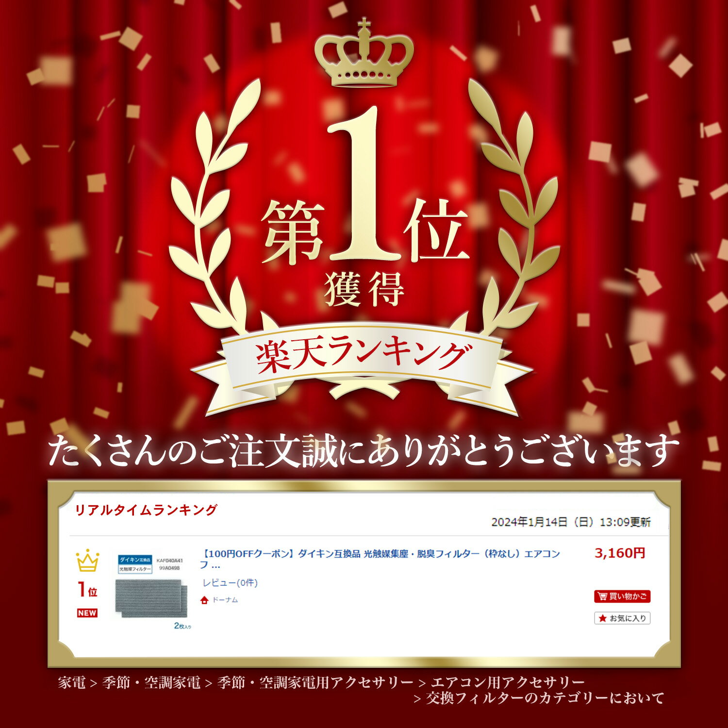 ◎その他おすすめセットはこちら◎ 商品説明 ダイキン互換品 光触媒集塵・脱臭フィルター エアコン用交換フィルター(枠なし) 99A0498 2個入り 対応品番:KAF040A41 本品は消耗品です。使用環境によりフィルターの寿命が変化するため、汚れが目立ち効果が落ちているようでしたら、速やかに交換することをおすすめいたします。 −−−−−−−−−−−−−−−−−−−− 【 KAF040A41(対応機種)】 −−−−−−−−−−−−−−−−−−−− * 対応機種 【Aから始まる型番】 AJT22PCS-N , AJT22UCS-W , AJT22VCS-W , AJT22VFS-W , AJT22WCS-W , AJT22WFS-W , AJT22XCS-W , AJT25PCS-N , AJT25UCS-W , AJT25VCS-W , AJT25VFS-W , AJT25WCS-W , AJT25WFS-W , AJT25XCS-W , AJT28PCS-N , AJT28UCS-W , AJT28VCS-W , AJT28VFS-W , AJT28WCS-W , AJT28WFS-W , AJT28XCS-W , AJT40PCP-N , AJT40UCP-W , AJT40VCP-W , AJT40VFP-W , AJT40WCP-W , AJT40WFP-W , AJT40XCP-W , AJT40YCP-W , AJT56UCP-W , AJT56VCP-W , AJT56VFP-W , AJT56WCP-W , AJT56WFP-W , AJT56XCP-W , AJT56YCP-W , AN22NFBBS-W , AN22NFSJ-W , AN22NFSK-W , AN22NFS-W , AN22NKFS-W , AN22NWS-W , AN22PCBKS-W , AN22PCSJ-W , AN22PCSK-W , AN22PCS-W , AN22PFBKS-W , AN22PFSK-W , AN22PFS-W , AN22PWS-W , AN22RCSK-W , AN22RCS-W , AN22RFBKS-W , AN22RFSK-W , AN22RFS-W , AN22RWS-W , AN22SCSK-W , AN22SCS-W , AN22SFNS-W , AN22SFSK-W , AN22SFS-W , AN22TCSK-W , AN22TCS-W , AN22TFNS-W , AN22TFSK-W , AN22TFS-W , AN22UCSK-W , AN22UCS-W , AN22UFNS-W , AN22UFSK-W , AN22UFS-W , AN22VCSK-W , AN22VCS-W , AN22VFNS-W , AN22VFSK-W , AN22VFS-W , AN22WCSK-W , AN22WCS-W , AN22WFNS-W , AN22WFSK-W , AN22WFS-W , AN22XCSK-W , AN22XCS-W , AN25NFBBS-W , AN25NFSJ-W , AN25NFSK-W , AN25NFS-W , AN25NKFS-W , AN25NWS-W , AN25PCBKS-W , AN25PCSJ-W , AN25PCSK-W , AN25PCS-W , AN25PFBKS-W , AN25PFSK-W , AN25PFS-W , AN25PWS-W , AN25RCSK-W , AN25RCS-W , AN25RFBKS-W , AN25RFSK-W , AN25RFS-W , AN25RWS-W , AN25SCSK-W , AN25SCS-W , AN25SFNS-W , AN25SFSK-W , AN25SFS-W , AN25TCSK-W , AN25TCS-W , AN25TFNS-W , AN25TFSK-W , AN25TFS-W , AN25UCSK-W , AN25UCS-W , AN25UFNS-W , AN25UFSK-W , AN25UFS-W , AN25VCSK-W , AN25VCS-W , AN25VFNS-W , AN25VFSK-W , AN25VFS-W , AN25WCSK-W , AN25WCS-W , AN25WFNS-W , AN25WFSK-W , AN25WFS-W , AN25XCSK-W , AN25XCS-W , AN28NFBBS-W , AN28NFSJ-W , AN28NFSK-W , AN28NFS-W , AN28NKFS-W , AN28NWS-W , AN28PCBKS-W , AN28PCSJ-W , AN28PCSK-W , AN28PCS-W , AN28PFBKS-W , AN28PFSK-W , AN28PFS-W , AN28PWS-W , AN28RCSK-W , AN28RCS-W , AN28RFBKS-W , AN28RFSK-W , AN28RFS-W , AN28RWS-W , AN28SCSK-W , AN28SCS-W , AN28SFNS-W , AN28SFSK-W , AN28SFS-W , AN28TCSK-W , AN28TCS-W , AN28TFNS-W , AN28TFSK-W , AN28TFS-W , AN28UCSK-W , AN28UCS-W , AN28UFNS-W , AN28UFSK-W , AN28UFS-W , AN28VCSK-W , AN28VCS-W , AN28VFNS-W , AN28VFSK-W , AN28VFS-W , AN28WCSK-W , AN28WCS-W , AN28WFNS-W , AN28WFSK-W , AN28WFS-W , AN28XCSK-W , AN28XCS-W , AN36NFBBS-W , AN36NFSJ-W , AN36NFSK-W , AN36NFS-W , AN36NKFS-W , AN36NWS-W , AN36PCBKS-W , AN36PCSJ-W , AN36PCSK-W , AN36PCS-W , AN36PFBKS-W , AN36PFSK-W , AN36PFS-W , AN36PWS-W , AN36RCSK-W , AN36RCS-W , AN36RFBKS-W , AN36RFSK-W , AN36RFS-W , AN36RWS-W , AN36SCSK-W , AN36SCS-W , AN36SFNS-W , AN36SFSK-W , AN36SFS-W , AN36TCSK-W , AN36TCS-W , AN36TFNS-W , AN36TFSK-W , AN36TFS-W , AN36UCSK-W , AN36UCS-W , AN36UFNS-W , AN36UFSK-W , AN36UFS-W , AN36VCSK-W , AN36VCS-W , AN36VFNS-W , AN36VFSK-W , AN36VFS-W , AN36WCSK-W , AN36WCS-W , AN36WFNS-W , AN36WFSK-W , AN36WFS-W , AN36XCSK-W , AN36XCS-W , AN40NFBBP-W , AN40NFPJ-W , AN40NFPK-W , AN40NFP-W , AN40NKFP-W , AN40NWP-W , AN40PCBKP-W , AN40PCPJ-W , AN40PCPK-W , AN40PCP-W , AN40PFBKP-W , AN40PFPK-W , AN40PFP-W , AN40PWP-W , AN40RCPK-W , AN40RCP-W , AN40RFBKP-W , AN40RFPK-W , AN40RFP-W , AN40RWP-W , AN40SCPK-W , AN40SCP-W , AN40SFNP-W , AN40SFPK-W , AN40SFP-W , AN40TCPK-W , AN40TCP-W , AN40TFNP-W , AN40TFPK-W , AN40TFP-W , AN40UCPK-W , AN40UCP-W , AN40UFNP-W , AN40UFPK-W , AN40UFP-W , AN40VCPK-W , AN40VCP-W , AN40VFNP-W , AN40VFPK-W , AN40VFP-W , AN40WCPK-W , AN40WCP-W , AN40WFNP-W , AN40WFPK-W , AN40WFP-W , AN40XCPK-W , AN40XCP-W , AN40YCPK-W , AN40YCP-W , AN56NFBBP-W , AN56NFPJ-W , AN56NFPK-W , AN56NFP-W , AN56NKFP-W , AN56NWP-W , AN56PCBKP-W , AN56PCPJ-W , AN56PCPK-W , AN56PCP-W , AN56PFBKP-W , AN56PFPK-W , AN56PFP-W , AN56PWP-W , AN56RCPK-W , AN56RCP-W , AN56RFBKP-W , AN56RFPK-W , AN56RFP-W , AN56RWP-W , AN56SCPK-W , AN56SCP-W , AN56SFNP-W , AN56SFPK-W , AN56SFP-W , AN56TCPK-W , AN56TCP-W , AN56TFPK-W , AN56TFP-W , AN56UCPK-W , AN56UCP-W , AN56UFPK-W , AN56UFP-W , AN56VCPK-W , AN56VCP-W , AN56VFPK-W , AN56VFP-W , AN56WCPK-W , AN56WCP-W , AN56WFPK-W , AN56WFP-W , AN56XCPK-W , AN56XCP-W , AN56YCPK-W , AN56YCP-W , AN63PCBKP-W , AN63PCPJ-W , AN63PCPK-W , AN63PCP-W , AN63RCPK-W , AN63RCP-W , AN63SCPK-W , AN63SCP-W , AN63TCPK-W , AN63TCP-W , AN63TFPK-W , AN63TFP-W , AN63UCPK-W , AN63UCP-W , AN63UFPK-W , AN63UFP-W , AN63VCPK-W , AN63VCP-W , AN63VFPK-W , AN63VFP-W , AN63WCPK-W , AN63WCP-W , AN63WFPK-W , AN63WFP-W , AN63XCPK-W , AN63XCP-W , AN63YCPK-W , AN63YCP-W , AN71PCBKP-W , AN71PCPJ-W , AN71PCPK-W , AN71PCP-W , AN71RCPK-W , AN71RCP-W , AN71SCPK-W , AN71SCP-W , AN71TCPK-W , AN71TCP-W , AN71TFPK-W , AN71TFP-W , AN71UCPK-W , AN71UCP-W , AN71UFPK-W , AN71UFP-W , AN71VCPK-W , AN71VCP-W , AN71VFPK-W , AN71VFP-W , AN71WCPK-W , AN71WCP-W , AN71WFPK-W , AN71WFP-W , AN71XCPK-W , AN71XCP-W , AN71YCPK-W , AN71YCP-W , ATC22PSE1-W , ATC22RSE2-W , ATC22SSE3-W , ATC22TSE4-W , ATC22USE5-W , ATC22VSE6-W , ATC22WSE7-W , ATC22XSE8-W , ATC25PSE1-W , ATC25RSE2-W , ATC25SSE3-W , ATC25TSE4-W , ATC25USE5-W , ATC25VSE6-W , ATC25WSE7-W , ATC25XSE8-W , ATC28PSE1-W , ATC28RSE2-W , ATC28SSE3-W , ATC28TSE4-W , ATC28USE5-W , ATC28VSE6-W , ATC28WSE7-W , ATC28XSE8-W , ATC36PSE1-W , ATC36RSE2-W , ATC36SSE3-W , ATC36TSE4-W , ATC36USE5-W , ATC36VSE6-W , ATC36WSE7-W , ATC36XSE8-W , ATC40PPE1-W , ATC40RPE2-W , ATC40SPE3-W , ATC40TPE4-W , ATC40UPE5-W , ATC40VPE6-W , ATC40WPE7-W , ATC40XPE8-W , ATC56PPE1-W , ATC56RPE2-W , ATC56SPE3-W , ATC56TPE4-W , ATC5