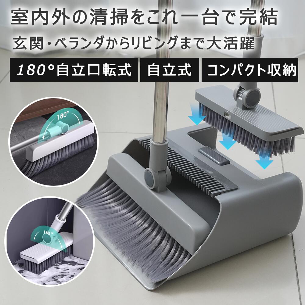 【ポイント10倍】ほうき ちりとり セット 自立式 おしゃれ 室内 屋外 玄関 庭 ベランダ コンパクト スリム 収納 スタンド 箒 軽くて使いやすい 掃除用品 ホウキ チリトリ デッキブラシ 3点セット室内用柔らかプラシ床を保護する