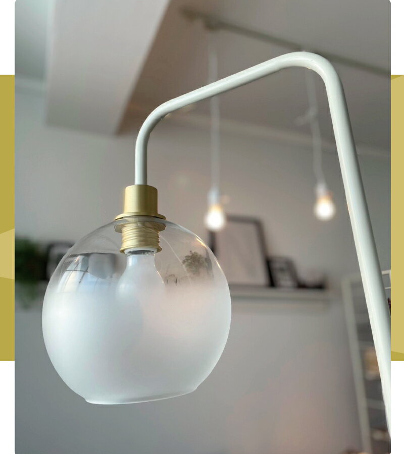 B U L B - 対 応 電 球 - (電球の種類により明るさ、外観、影が異なります) ※電球は別売りとなっておりますので、こちらからお求めください。 E26/40W 白熱電球(ホワイト)明るさを抑えたい方。 E26/60W 白熱レトロ球(クリア) E26/20W相当 LED装飾電球(琥珀)アンバークリア E26/60W相当 LED電球(電球色)クリアー(フィラメント) E26/60W相当 LEDフィラメントボール電球(ホワイト) E26/60W相当 LEDフィラメントボール電球(クリア) D E T A I L & S P E C - 商 品 詳 細 と 仕 様 - ■ 商 品 名 ───────────────────────── フロアライト B:nerus (ビーネルス) ■ 型 番 ───────────────────────── YWFL-511 ■ カ ラ ー ───────────────────────── グラデフロスト/グレー(WGY) スモーク/ブラック(SBK) ■ サ イ ズ (mm) ───────────────────────── シェード径20 × 高さ17 × 開口部12cm 本体:幅40cm × 高さ157cm コード全長:200cm ■ 重 量 (kg) ───────────────────────── 約6.0kg ■ 素 材 ───────────────────────── スチール、ガラス ■ 付 属 電 球 ───────────────────────── なし ■ 対 応 電 球 ───────────────────────── 口金E26/消費電力60W以下×1 ※電球をご用意される際は、シェード開口部が約10cmなので、直10cm未満の電球をお選びください。 ■ ス イ ッ チ ───────────────────────── フットスイッチ(ON/OFF) ■ 取 り 付 け ───────────────────────── コンセント接続 ■ 生産国 ───────────────────────── 中国 ■ 保 証 期 間 ───────────────────────── メーカー1年間保証 ■ 店長の「使ってみて思ったこと」 ───────────────────────── ポジティブ:当店限定。いまの自分が1番欲しいフロアライトを1年がかりで製作した特徴的なシェードと、シャインゴールドのパーツがアクセントになった照明アイテム。このような間接照明は、置くだけで簡単にお部屋をオシャレにすることができるので大変オススメです。設置も組み立ててコンセントにつなぐだけなので、天井照明を変えるよりも簡単ですよ。 ネガティブ:組み立てが…難しくはないのですが、分かってしまうと簡単な構造なので、商品ページの組み立て画像を参考に予習しておいてください。分かれば簡単です。支柱は完全な真っすぐにはなりません。 ■ 備 考 ・ 注 意 事 項 ───────────────────────── ・電球は付属しません。 ・適合電球:E26/60W以下、直径10cm × 全長18cm以下の電球をお選びください。 ・組み立て式です。 ・支柱は完全な真っすぐにはなりません。 ・型吹きガラス製法のため、質感の違いや、気泡の発生がありますが不良品ではありません。 ・掲載画像についてはご覧の環境により若干実物と異なる場合があります。 ・予告なく欠品、廃盤になる場合があります。 ※交換用ガラスシェード単体の販売ページは コチラ になります。 ■ お問い合わせの前にご覧ください。 ■ まだまだありますフロアスタンドライト ----< 検 索 用 ワ ー ド>---- 照明器具/間接照明/ライト/DOTS-NEXT/dotsnext/ドッツネクスト/フロアライト/フロアスタンド/スタンドライト/北欧/おしゃれ/モダン/シンプル/スタイリッシュ/インテリア/リビング用/居間用/ダイニング用/食卓用/一人暮らし/ワンルーム/1灯/男前/インダストリアル/ブラック/ホワイト/モノトーン/YWFL-511└ PRODUCT DESCRIPTION <左の写真:白熱球40W> 白熱電球はややオレンジ色が強くでます。光源は非常に柔らかくガラス全体を照らしてくれるので、おしゃれで美しい印象を与えてくれます。 ・白熱電球E26/40Wはこちらです。 <中央の写真:LEDボール電球60W> 器具の丸いガラスと相まって、二重ガラスのように見えるおしゃれで可愛らしい電球です。※特に「WGY」におすすめです。 ・LEDボール電球E26/60W(電球色)はこちらです。 <右の写真:LEDビンテージ電球20W> 暗めでムードある装飾用電球です。明るくありません。電球のカバーが透明なので、ガラスや器具の陰影などが少しだけでやすいです。また陰影に関しては壁や天井が近ければ近いほど影は濃く反映されます。※特に「SBK」におすすめです。 ・LEDビンテージ電球E26/20W(電球色)はこちらです。 ■ スモークガラスの効果により、すべてにおいて「WGY」より暗い演出が可能です。 <左の写真:白熱球40W> 白熱電球はややオレンジ色が強くでます。光源は非常に柔らかくガラス全体を照らしてくれるので、おしゃれで美しい印象を与えてくれます。 ・白熱電球E26/40Wはこちらです。 <中央の写真:LEDボール電球60W> 器具の丸いガラスと相まって、二重ガラスのように見えるおしゃれで可愛らしい電球です。かわいらしさがでました。 ・LEDボール電球E26/60W(電球色)は