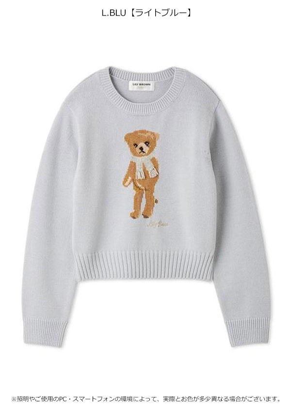 【EC限定カラー/PNK】【SALE30%OFF】【即納】 リリー ブラウン LILY BROWN トップス 25秋冬 Lily Bearフリンジマフラーニットトップス 長袖 ミドル丈 lwnt255047