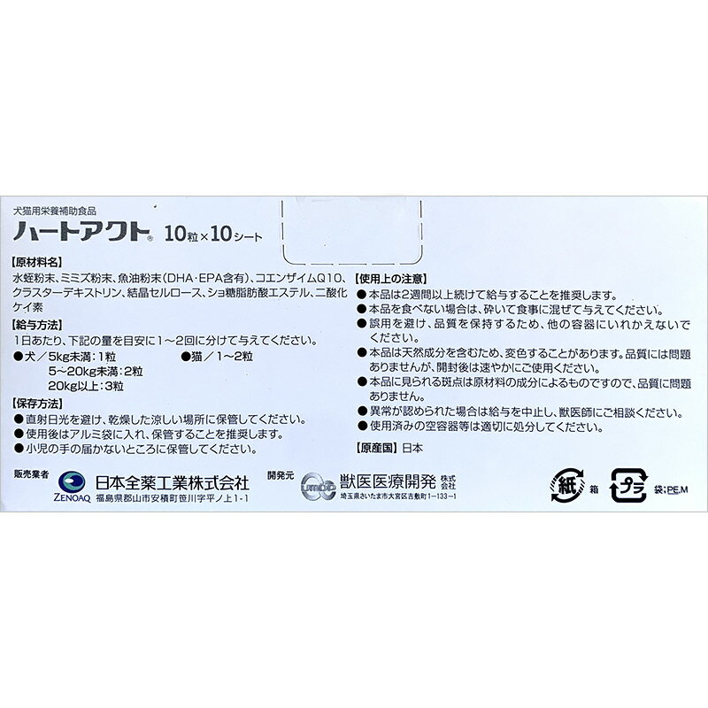 【あす楽】【ハートアクト (100粒)×1個】【犬猫】【心臓】【日本全薬工業】(ハートアクト) 【全国】*(C5)