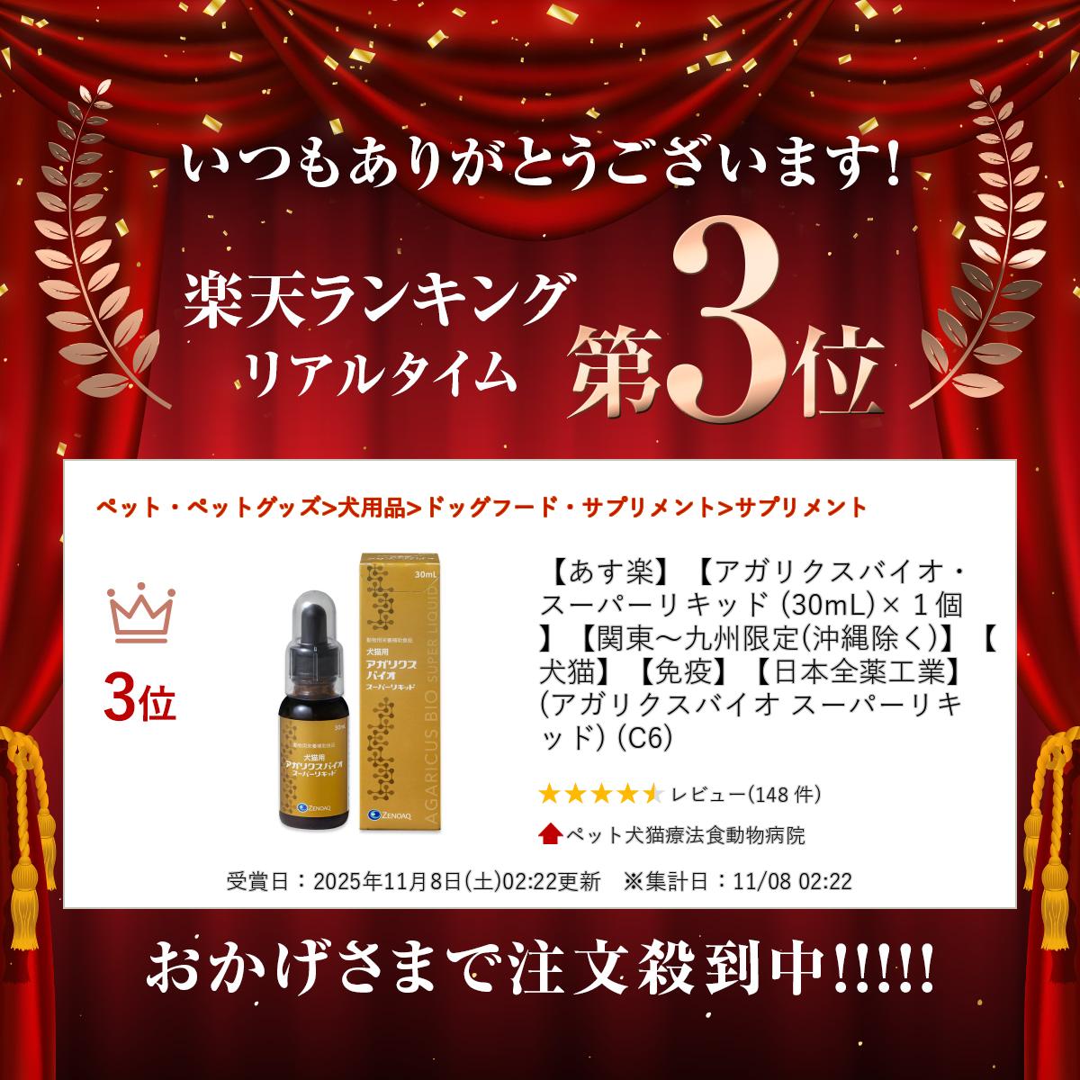 【あす楽】【アガリクスバイオ・スーパーリキッド (30mL)×1個】【関東〜九州限定(沖縄除く)】【犬猫】【免疫】【日本全薬工業】(アガリクスバイオ スーパーリキッド) (C6)