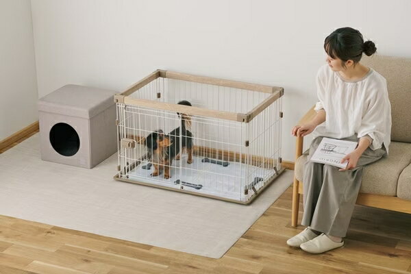 他カラーはこちら アッシュグレー インテリアに調和するやさしい木目のサークルです。 上下の四隅にピンを差し込むだけで簡単に組み立てできます。 スムーズに開閉できるらくらくスライド扉です。 サッと汚れが拭き取れるお掃除楽ちんトレーが付いています。取り外して丸洗いもできます。 ウッディサークル(PWSR-960LV)よりもサイズがコンパクトで、お部屋もすっきりします。 別売のウッディシステムサークル用屋根を取り付けることで脱走防止になります。 お客様組み立てとなります。 ●メーカー:アイリスオーヤマ ●品番:SWS-900 ●カラー:ナチュラル ●商品サイズ:幅906mm 奥行618mm 高さ550mm ●適合種(目安):小型犬、中型犬 ●入口サイズ(約):360×445mm ●商品内寸(約):834×534mm ●重量:7.9kg ●主要素材: 【パネル】フレーム:合成樹脂化粧繊維板(塩化ビニル樹脂)・ABS樹脂、線材:スチール(エポキシ樹脂塗装) 【ジョイント、トレー】ポリプロピレン 【固定ピン】ポリアセタール 【扉ロック】ABS樹脂 ●適合商品:ウッディシステムサークル用屋根 SWS-900Y専用 ※沖縄・離島一部指定地域への配送は送料お見積りとなります。