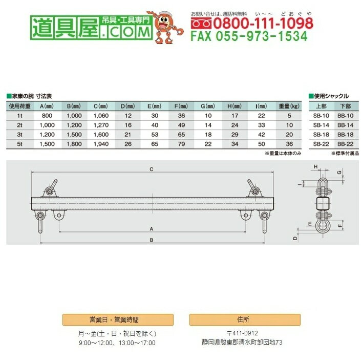 オーザック 家康の腕 軽量吊り天秤 使用荷重2T セット品