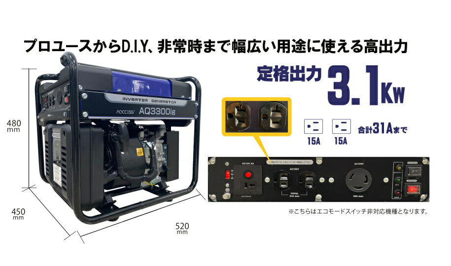 【ポイント10倍】【直送品】 日本アクセス AQCCESS インバーター発電機 AQ3300ig 【大型】