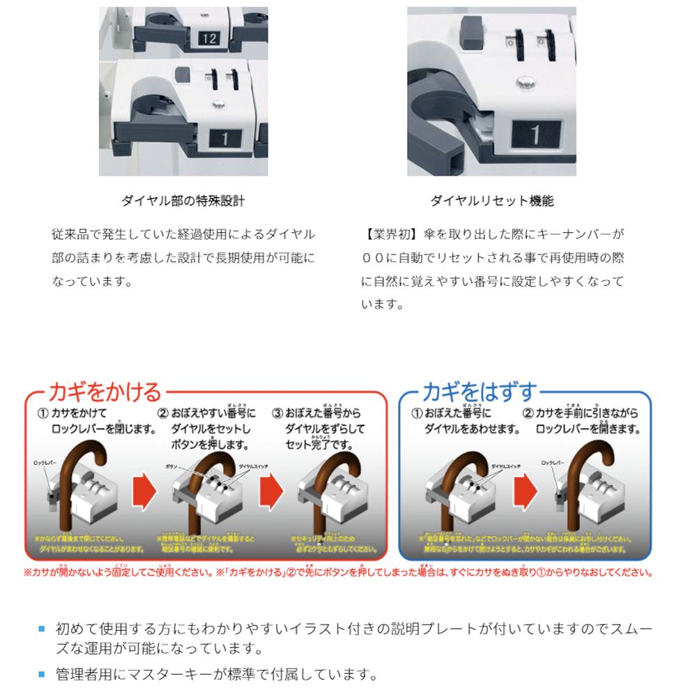 《仕様》●品番: 2340010●代表製品名: ダイヤル錠傘立て●代表規格: MU-18材質●本体:スチール(粉体塗装)●ダイヤル錠:ASA樹脂●水受皿:ナイロン(再生90%)カラー●Mホワイト備考(入数)●1台備考(基本)●傘立て:キータイプ●出荷日目安:約2〜3日●キャスター付き●お客様組立品●運賃実費別途請求■傘収納目安:18本●奥行: 550MM●幅(長さ): 675MM●高さ(厚み): 1178MM●重量: 約12.5KG《特長》●2ダイヤル式の暗証番号で管理が可能なキータイプの傘立てです。●キャスター付きで移動もスムーズです。■病院、公共施設、ホテル、工場、学校、オフィス等備考(注意)●マスターキー付き【配送料について】●こちらの商品はお届け先により配送料が異なります。●また、荷降ろしの為フォークリフト等の設備が必要な場合がございます。●ご注文後にメールにてご案内させて頂きます。※事前にお問合せ頂いても構いません。【お支払い方法について】●こちらの商品はメーカーからの直送となります。代金引換のお支払い方法はご利用になれません。●代金引換にてご注文頂いた場合はご注文をキャンセルとさせて頂く場合がございますので予めご了承下さいませ。《仕様》●品番: 2340010●代表製品名: ダイヤル錠傘立て●代表規格: MU-18材質●本体:スチール(粉体塗装)●ダイヤル錠:ASA樹脂●水受皿:ナイロン(再生90%)カラー●Mホワイト備考(入数)●1台備考(基本)●傘立て:キータイプ●出荷日目安:約2〜3日●キャスター付き●お客様組立品●運賃実費別途請求■傘収納目安:18本●奥行: 550MM●幅(長さ): 675MM●高さ(厚み): 1178MM●重量: 約12.5KG《特長》●2ダイヤル式の暗証番号で管理が可能なキータイプの傘立てです。●キャスター付きで移動もスムーズです。■病院、公共施設、ホテル、工場、学校、オフィス等備考(注意)●マスターキー付き