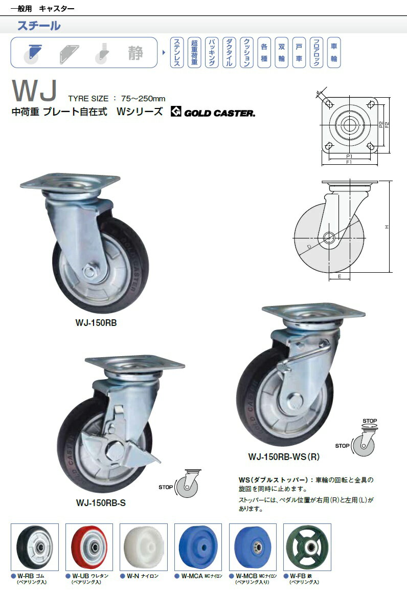 東正車輌 ゴールドキャスター WJ-100MCB プレート自在式 100mm MCナイロン車輪