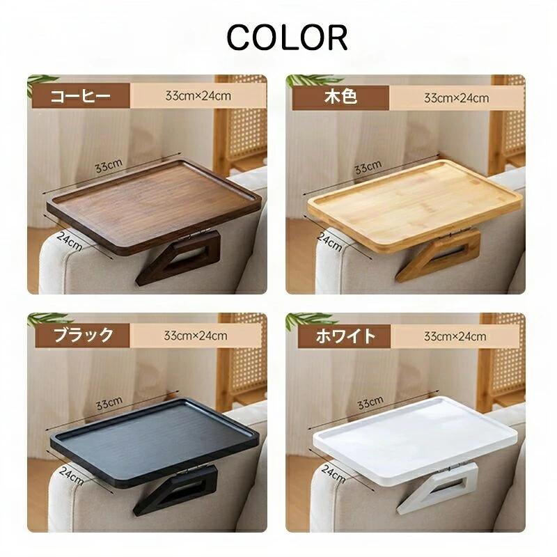 カラー:コーヒー色;木色;ブラック色;ホワイト色サイズ:約33*24cmこの木製の折りたたみ式アームテーブルは、ソファのアーム部分に置いて使用でき飲み物やリモコンなどを置くに最適なテーブルです。ナチュラルな木目が美しく洗練されたデザインでお部屋のインテリアにマッチします。シンプルなデザインで、どんなお部屋にも合わせやすいです。折りたたみ式なので収納や移動が簡単にできるため、必要な時にだけ使用ができ、使わない時は場所を取らずにスマートに収納することができます。このアームテーブルを使うことで、ソファ周りに余計な家具を置かずにすみ、スッキリとした空間を保つことができます。※天然木を使用しているため、木目や色味には多少のバラつきがあります。これは自然素材ならではの特徴であるため予めご理解の上お買い求めください。※出荷前全数検品をし万全を期しておりますが、万が一何か問題がありましたら、ご連絡お願いたします。.