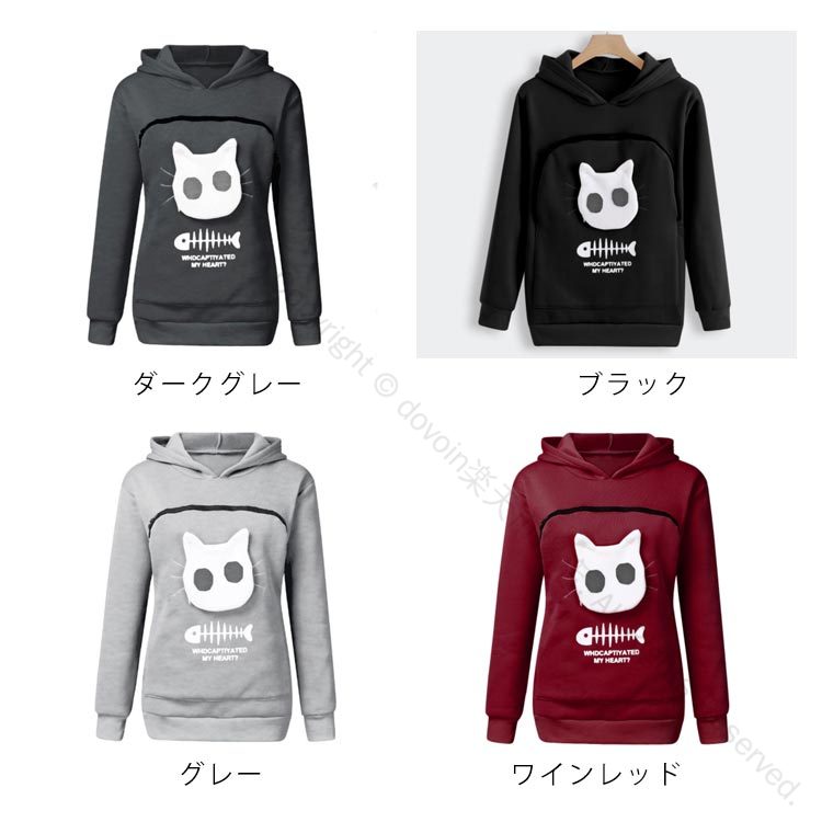 プルオーバー 猫 犬 メンズ レディース パーカー 猫も入れる抱っこあったか暖かフード付き大きめカンガルーポケットにゃんこポケット防寒長袖裏起毛小動物ペット用抱っこキャリアスリング誕生日プレゼント