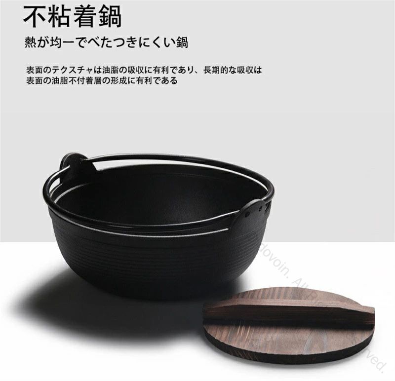 鉄鍋 いろり鍋 25cm 27cm 29cm 鉄鋳物製 ガス火 IH対応 家族鍋 業務用 飲食店 懐石料理 料理宴会用 田舎鍋 宴席 料亭 居酒屋 天然木蓋付き 囲炉裏鍋 一人鍋 1人鍋 使いやすいサイズバリエーション