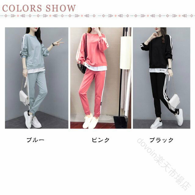 スウェット セットアップ M-4XL動きやすさを重視したフラットスタイルの商品!首元がゆったりしていて、締め付け感がなく着心地抜群◎ランニングやジョギングなどに最適♪スポーツウェアとして使うのはもちろん、自宅などでフラット着れるルームウェアとしても使える! サイズ M L XL 2XL 3XL 4XL サイズについての説明 M L XL 2XL 3XL 4XL サイズ:写真通り ※上記サイズは平置き実寸になります。サイズ表の実寸法は商品によって1-3cm程度の誤差がある場合がございます。麻?上?尺?表,【衣? 胸? 肩? 袖? ?? 臀?】改?【トップス着丈 バスト 肩幅 袖丈 パンツ着丈 ヒップ】,【腰?】不上? 素材 ポリエステル 色 ピンク ブルー ブラック 備考 ●サイズ詳細等の測り方はスタッフ間で統一、徹底はしておりますが、実寸は商品によって若干の誤差(1cm〜3cm )がある場合がございますので、予めご了承ください。 ●商品の色は、撮影時の光や、お客様のモニターの色具合などにより、実際の商品と異なる場合がございます。あらかじめ、ご了承ください。 ●製品によっては、生地の特性上、洗濯時に縮む場合がございますので洗濯時はご注意下さいませ。 ▼色味の強い製品によっては他の衣類などに色移りする場合もございますので、速やかに(脱水、乾燥等)するようにお願いいたします。 ▼生地によっては摩擦や汗、雨などで濡れた時は、他の製品に移染する恐れがございますので、着用の際はご注意下さい。 ▼生地の特性上、やや匂いが強く感じられるものもございます。数日のご使用や陰干しなどで気になる匂いはほとんど感じられなくなります。 指定された配送時間は承っておりません。【dovoin楽天市場店】