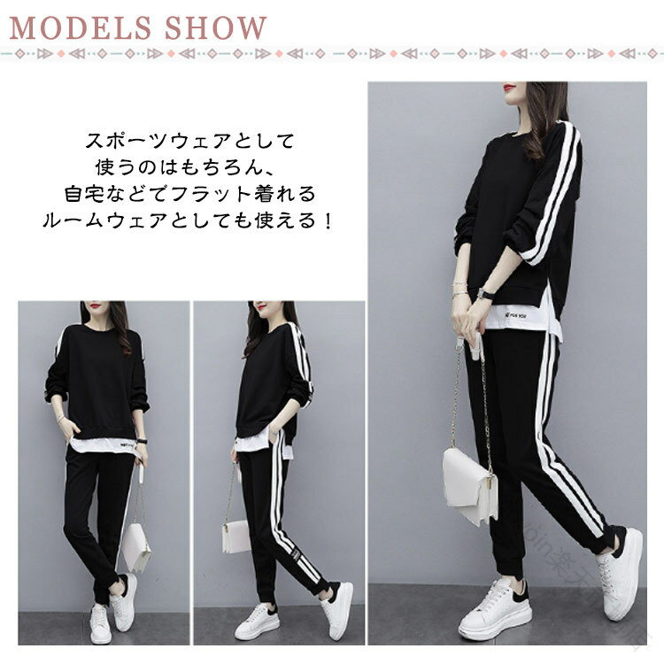 長袖 部屋着 ジャージ セット セットアップ レディース 黒 スウェットパンツ 大きいサイズ 秋冬 薄手 ルームウェア トップス ライン入り スポーツウェア パンツ 春 秋 冬 夏 入院 産後 修学旅行 上下 おしゃれ 快適 軽量