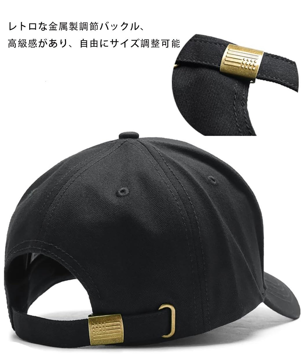 商品情報商品の説明主な仕様 【快適なかぶり心地と上質な素材感】コットン100%,ファッションの野球帽です。br【サイズ】 頭周り約:60-65cm、つばの長さ約:8cm、深さ約:18cm。 帽子は金属製のバックルで閉じられており、お好みのサイズに調整できます。横幅が広く奥行が深い傾向にある日本人の頭囲を考慮したデザインのキャップメンズです。br【独特のシルエット】型崩れしない硬質構造で、常に美しいシルエットを維持。小顔効果とスタイルアップ効果。当社の高い品質基準と厳格な要件により、すべての細部に完璧を追求しています。br【2スタイル展開】 ロゴ入りモデル:シックなブラックorホワイト地に、高級感あふれる精密刺繍ロゴを施したスタイリッシュなデザイン。繊細なステッチが上質な雰囲気を演出します。無地モデル:全5色展開のシンプルで使いやすいプレーンタイプ。br【注意点】寸法は手測定しているため、1-2 cmの誤差がある場合がありますのでご了承ください。