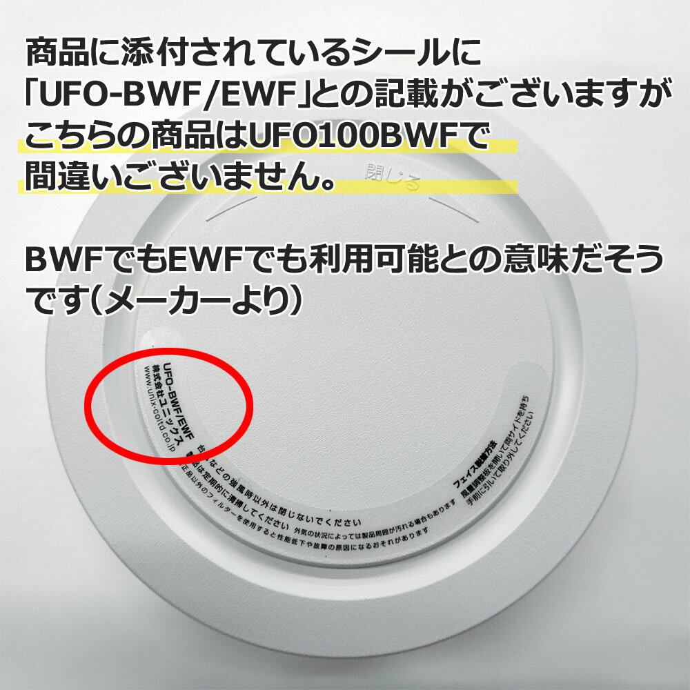 *メッシュフィルター付 *カラー:クールホワイト *用途:天井取付用 *材質:ABS樹脂(帯電防止剤配合) *適用パイプ内径:100(mm) ★非常に多いご質問 Q1. UFO100BWFを購入したが商品にはUFO-BWF/EWFというラベルが貼られている。間違いではないか? A1. 商品違いではございません。型番通りのお届けとなります。こちらの商品はUFO-EWFにも取付可能という意味でこのようなラベルになっています。(メーカー回答) Q2. 交換取り付けができない。 A1. 取付工事を行う場合でなければベース部は不要ですので、ベース部を取り外して交換してください。