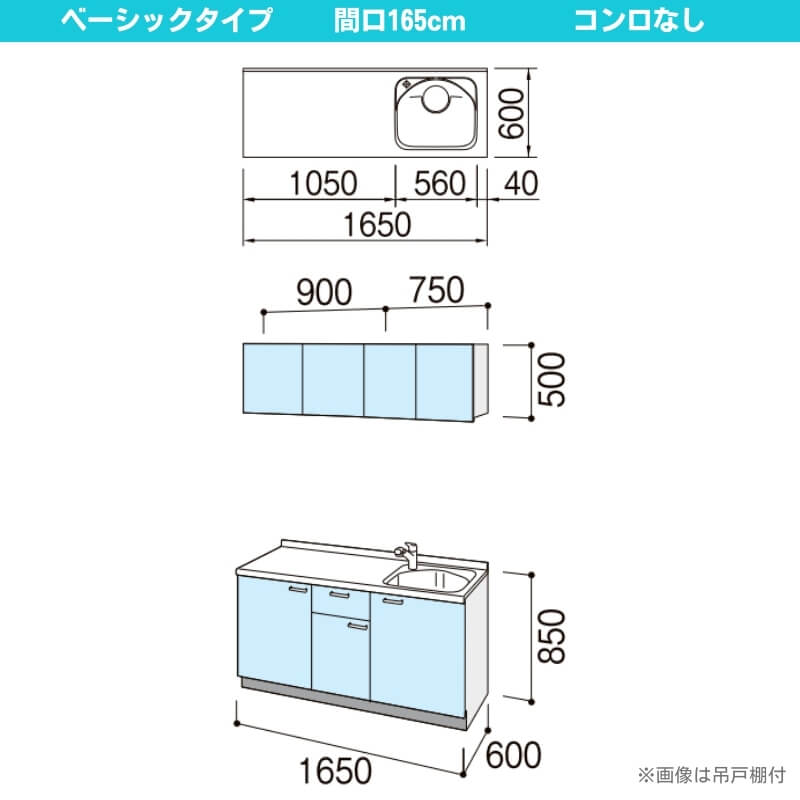 【12月はエントリーでP10倍】 コンパクトキッチン ティオ Tio LixiL 壁付I型 ベーシック W1650mm 間口165cm コンロなし グループ1 リクシル システムキッチン 流し台 ドリーム