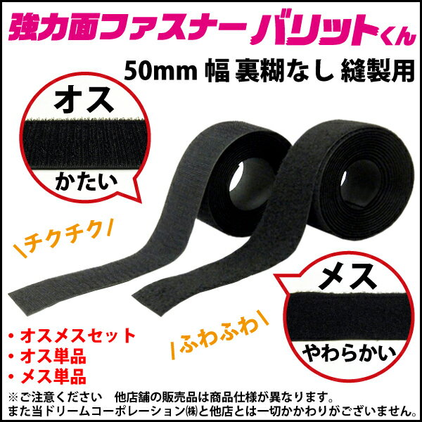 楽天1位 業務用 超強力タイプ 面ファスナー 黒 幅 50mm × 25M オス 単品 裏糊なし 縫い付け | バリットくん 超強力 強力 ばりっと フック バンド 白 手芸 ドリームコーポレーション オスのみ カーテン ソファー クッション ベルト バリット君 ばりっとくん