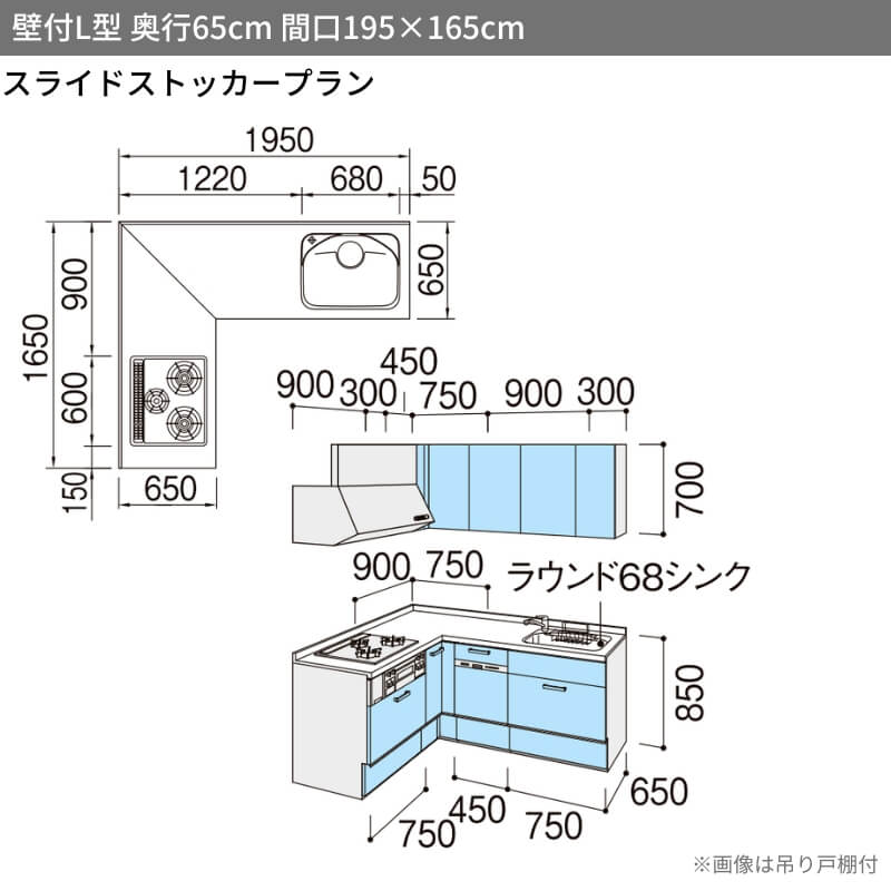 システムキッチン リクシル シエラS 壁付L型 スライドストッカープラン ウォールユニットなし 食器洗い乾燥機付 間口195×165/180cm 奥行65cm グループ2 流し台 リフォーム おしゃれ 可愛い キッチン セミオーダー 建材屋
