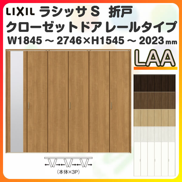 10月はエントリーでP10倍 【旧仕様】 特注 クローゼット折れ戸 扉 6枚折戸 ラシッサS LAA レールタイプ ケーシング付枠 オーダーサイズ W1845〜2746×H1545〜2023mm ミラー付/無 リクシル LIXIL トステム TOSTEM 折戸 クローゼットドア 扉 折れ戸 リフォーム DIY 建材屋