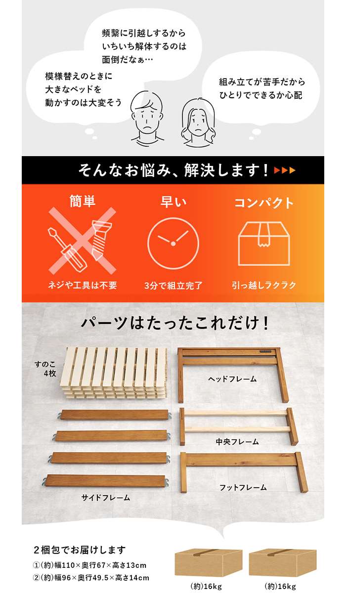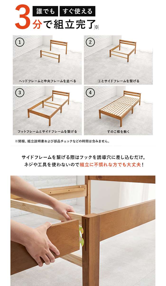 SEARCH WORD:組立ベッド すのこベッド シングル ベッド BED 寝具 ベッドフレーム すのこベッド すのこベッドフレーム すのこ スノコ スノコベッド 通気性 天然木 木製 買い替え 家具 インテリア 寝室 部屋 室内 シンプル おしゃれ 新生活 引越 転居 模様替え ファミリー 家族 家庭 商品概要:組立ベッド。カラーは、ライトブラウン(4934257312431:MB-5151SLBR)、プレーンナチュラル(4934257312462:MB-5151SNA)、ウォッシュホワイト(4934257312493:MB-5151SWS)、です。ネジなし、工具不要で簡単組立。便利な宮棚とコンセント付きシングルベッド。商品仕様:■メーカー:HAGIHARA■JANコード:4934257312431■商品名:組立簡単 宮棚付きシングルベッド すのこベッド ベッドフレーム 工具不要 シンプル■型番:MB-5151S■カラー、型番など:ライトブラウン(4934257312431:MB-5151SLBR)、プレーンナチュラル(4934257312462:MB-5151SNA)、ウォッシュホワイト(4934257312493:MB-5151SWS)、■商品サイズ(外寸):(約)幅100×奥行207.5×高さ65×床面高36cm■原産国:ベトナム製■内寸及び補足説明:■組立式■2口コンセント付■床面サイズ:W97×L198cm■材質:主材:天然木(パイン材)■ご注意事項:※ 掲載写真は表記サイズと異なる場合がございます。※ 画面上のカラーはご使用ブラウザやモニターの設定により、実物とは若干異なる場合がございます。あらかじめご了承の上、ご注文をお願いいたします。※商品は玄関渡しになります。※コーディネイトで使用している商品は本体には含まれません。■ご注文前にご確認ください:こちらの商品は初期不良以外の交換、返品はご遠慮頂いております。また、北海道、沖縄県、離島への発送はお受けできません。ご注文前にご確認の上、予めご了承ください。※商品概要、仕様、サービス内容及び企業情報などは商品発表時点のものです。※最新の情報に関しましては、メーカーサイトをご覧ください。※発売前予約商品についてはメーカーの商品製造数により納期が遅れる場合やご注文キャンセルをお願いする場合がございます。
