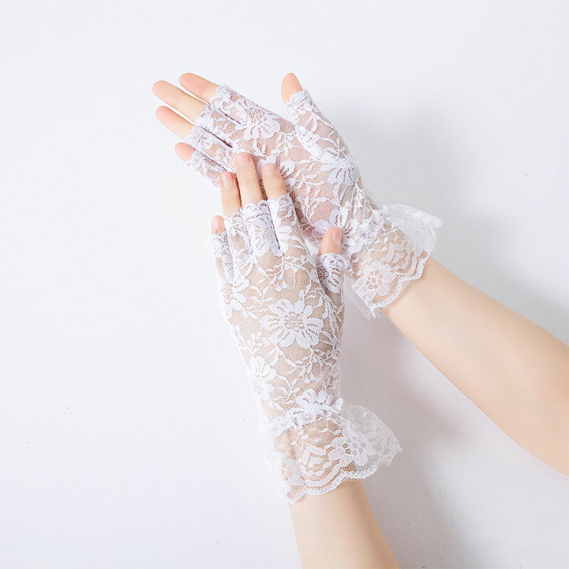 レース 手袋 白 黒 手袋 ショート レース ダンス 演奏会 ブライダル 花嫁 指ぬき フィンガーレス ショートグローブ 薔薇レースフリル付きショートグローブ[ブラックフライデーと5のつく日セール]