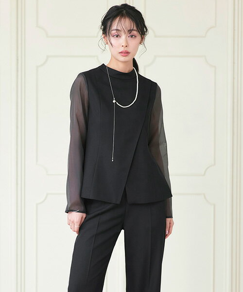 Charcoal Offwhite Black Detail 商品詳細 シアースリーブトップス&パンツ2点ドレスセット(PA1703) シアースリーブのトップスとテーパードパンツのセットアイテム。 トップスはフロントスリット風デザインがポイント。 袖をシアー素材にすることで抜け感をプラスしています。 パンツはボディラインを拾いにくいストレートシルエット。 ・大きく開いたフロントスリット風のデザイン。 ・袖はシアー素材にすることで抜け感をプラス。 【ディテール】 ◆トップス ・襟 シンプルなスタンドカラー。 ・開き具 開き具はホック&コンシールファスナーです。 ・スリット フロントスリット風デザイン。 ウエストで留めているためはだけすぎず安心です。 ・袖 シアースリーブが抜け感を演出。 ・裾 後ろ下がりのデザインでヒップラインをカバーしてくれます。 ◆パンツ ・フロント 履き込みタイプですっきりしています。 ・バックスタイル 後ろゴムで楽なはき心地。 スタイルアップ効果を狙ったフェイクポケット付き。 ・ポケット 左右に便利なポケット付き。 ◆裏地 トップスは身頃部分に裏地付き。 パンツはオフホワイトのみ裏地付き(半裏仕様) さらりとした着心地でオールシーズン着て頂けます。 ◆生地 トップス・パンツ:柔らかく肌触りの良いツイル生地。 シワになりにくい素材です。 袖:ほんのりと透け感のある、上品な雰囲気のオーガンジー素材。 【カラー】 ・ブラック ・チャコール ・オフホワイト ●サイズについて 「低身長~高身長」「やせ型~ぽっちゃり」など小さいサイズから大きいサイズまでご用意しています。 ●おすすめシーン 入学式(入園式)、卒業式(卒園式)、演奏会、発表会、学校行事、参観、セレモニー、2次会(二次会)、1.5次会、お呼ばれ、女子会、食事会、成人式、同窓会、謝恩会、誕生日会、七五三、お宮参り、パーティー、デート、婚活、街コン、オフィス、通勤、キャリア、ビジネススーツなど、20代・30代・40代・50代まで母親・ママさんにもご活用頂けるフォーマルなレディーススーツです。 サイズ サイズ トップス 着丈 バスト 肩幅 袖丈 M9号 62 94 36 59.5 L11号 63 98 37 60.5 LL13号 64 102 38 61.5 パンツ 総丈 ウエスト ヒップ 股下 渡り 裾幅 M9号 100 67~95 97 68 30.5 24.5 L11号 101 71~99 101 31.5 25.5 LL13号 102 75~103 105 32.5 26.5 *=SNP(ショルダーネックポイント) ■サイズガイド■ 素 材 【トップス】 表 地:ポリエステル 100% 別 地:ポリエステル 100% 裏 地:ポリエステル 100% 【オフホワイトのパンツ】 表 地:ポリエステル 100% 裏 地:ポリエステル 100% 【他カラーのパンツ】ポリエステル 100% 商品仕様 ◆伸縮性:あり ◆裏地:【トップス】袖部分以外あり 【パンツ】オフホワイトのみあり(総裏) ◆開き具:【トップス】後ろ開きファスナー 【パンツ】なし(後ろウエストゴム仕様) ◆カラー:オフホワイト/ブラック/チャコール 備 考 ※商品を平置きにし、メジャーにて手作業による採寸をしております。若干誤差がございます。サイズ等で不明な点はお問い合わせください。 ◆レビューは商品到着後でお願いします。 ■ご利用ガイド■