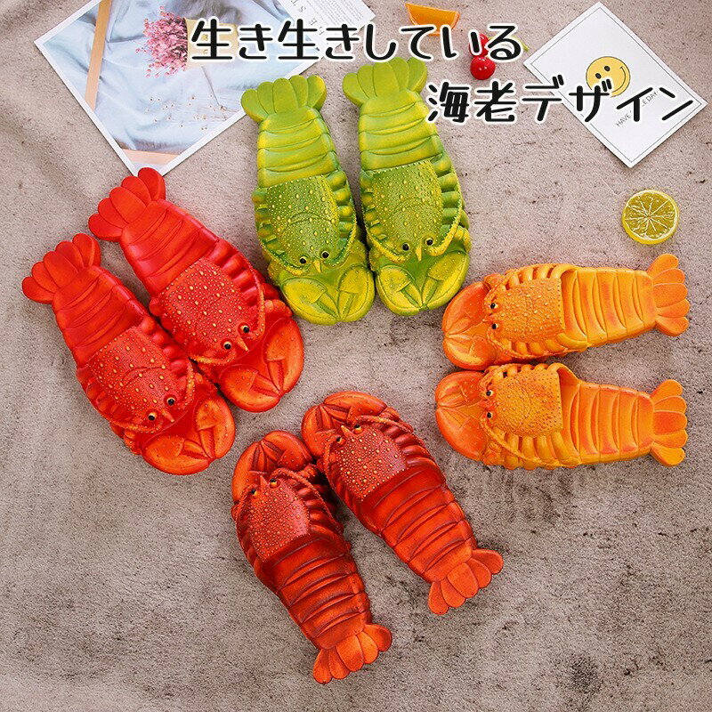 【2点購入で400円OFF】伊勢海老 サンダル ユニーク 男女兼用 親子お揃い 海老 スリッパ ロブスター 海老 デザイン おもしろ メンズ レディース キッズ 男女兼用 えび靴 シャワーサンダル ビーチサンダル 蝦サンダル 海 軽量 通気 プレゼント