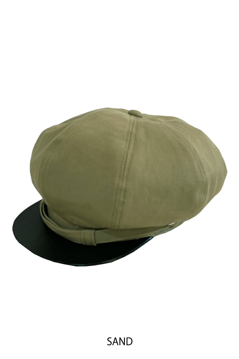 DCS-244 Johnny CapCotton Serge×Cow LeatherFree Size内周: 約56~61cm再入荷しました!SANDは生産時期によって、多少の色味の違いがございます。1953年にアメリカで公開された、アメリカの暴走族を題材として取り扱った映画「乱暴者(The Wild One)」にて、主人公のジョニーが被っていたキャップを元に企画しました。映画は当時社会問題化していた、兵役帰りの若者の無軌道な行動を描いて評判となりました。余りの過激さから、イギリスではしばらく放映禁止になっていました。主人公は当時売り出し中の若手、マーロン・ブランド。ダブルのモーターサイクルジャケット、5ポケットジーンズ、トリムTシャツにエンジニアブーツ。そしてキャップは、レザーのツバがついたコットンツイルの八方ハギ。映画はモノクロームなので本当の色は不明ですが、明らかに淡い色味のコットンツイル。私は当時のワークウエアの延長線上で考えれば、ライトグレーかカーキ、だと思っています。そのキャップを、より被り易く再現。顎紐は手に入りづらい金属蛇腹を使うよりも、共生地でベルトを作った方が効率的と考え実行。ツバのレザーは、厚く光沢があるカウハイドを使用しています。敢えて裏地は付けず、パイピングを施しただけの簡素な作りにしました。金属の天ボタン、両サイドのアイレット等、1950年代のキャップと同様の作りです。素材や色味をたまに変更しながら、早30年近く作り続けているドライボーンズの定番のひとつです。たまにはジョニー気分で斜めに被ってみてはいかが? ※ 同様に映画を元に作られたベルトはこちらです。 → DBM-122 Cross Stitch 1 3/4inch BeltDCS-244