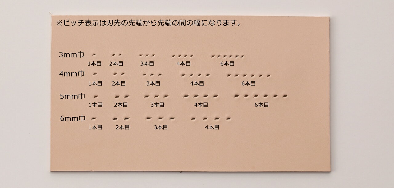 ■用途/特長 手縫い用の菱目打ちです。日本製で、きれいな縫い目を体現することが可能です。 刃は焼入れ加工を施し、抜群の切れ味です。 細部まで研磨することにより、無理なく革に穴があけられ、抜くときも革へのダメージがありません。 刃先が鋭角になっているため、きれいな菱形に穴が開きます。 ピッチ表示は刃先の先端から先端までの幅を表しています。 メーカー:協進エル サイズ:2.5mm巾 刃数:1本目/2本目/3本目/4本目/6本目 菱ギリはプロ菱ギリ(細)をご使用ください。 2.5mm巾はミニチュア品や細糸での手縫いに適しています。 【関連商品】・協進エル プロ菱ギリ 細・中・太 全3サイズ・Yorkshine T型菱ギリ・取替式オウル 丸キリ・菱キリ・フレンチ・ゴム板 木目調 小・中・大 全3サイズ ■ご注意 手工芸以外には使用しないこと。 刃先は鋭利にできていますので、お取り扱いには十分ご注意ください。 長期保管をする際はミシン油などを薄く塗布してください。 保管はお子様の手の届かない所に。