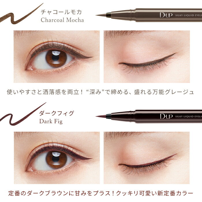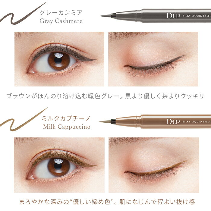 【D-UP公式】アイライナー ウォータープルーフ / ディーアップ シルキーリキッド アイライナー <全色> [ チャコールモカ ダークフィグ グレーカシミア ミルクカプチーノ ブラック ブラウン ナチュラルブラウン シフォンピンク アプリコット]